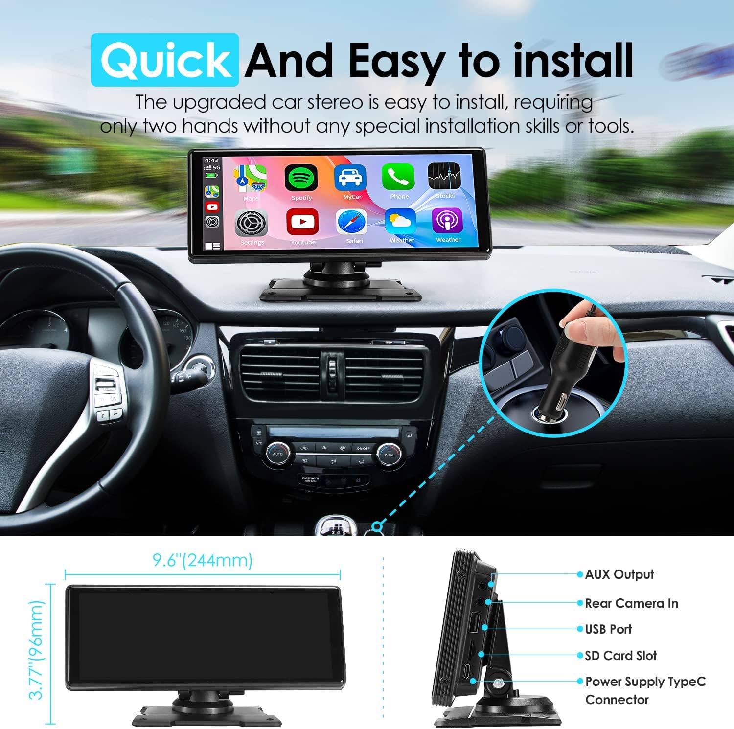 Syncarstereo Wireless Apple CarPlay&Android Auto, Tragbares Autoradio, 9,33 Zoll HD IPS Touchscreen CarPlay Display, GPS Navi mit Rückfahrkamera, Bluetooth, Mirror Link, FM/Siri/Google, AUX Digital Media Receiver