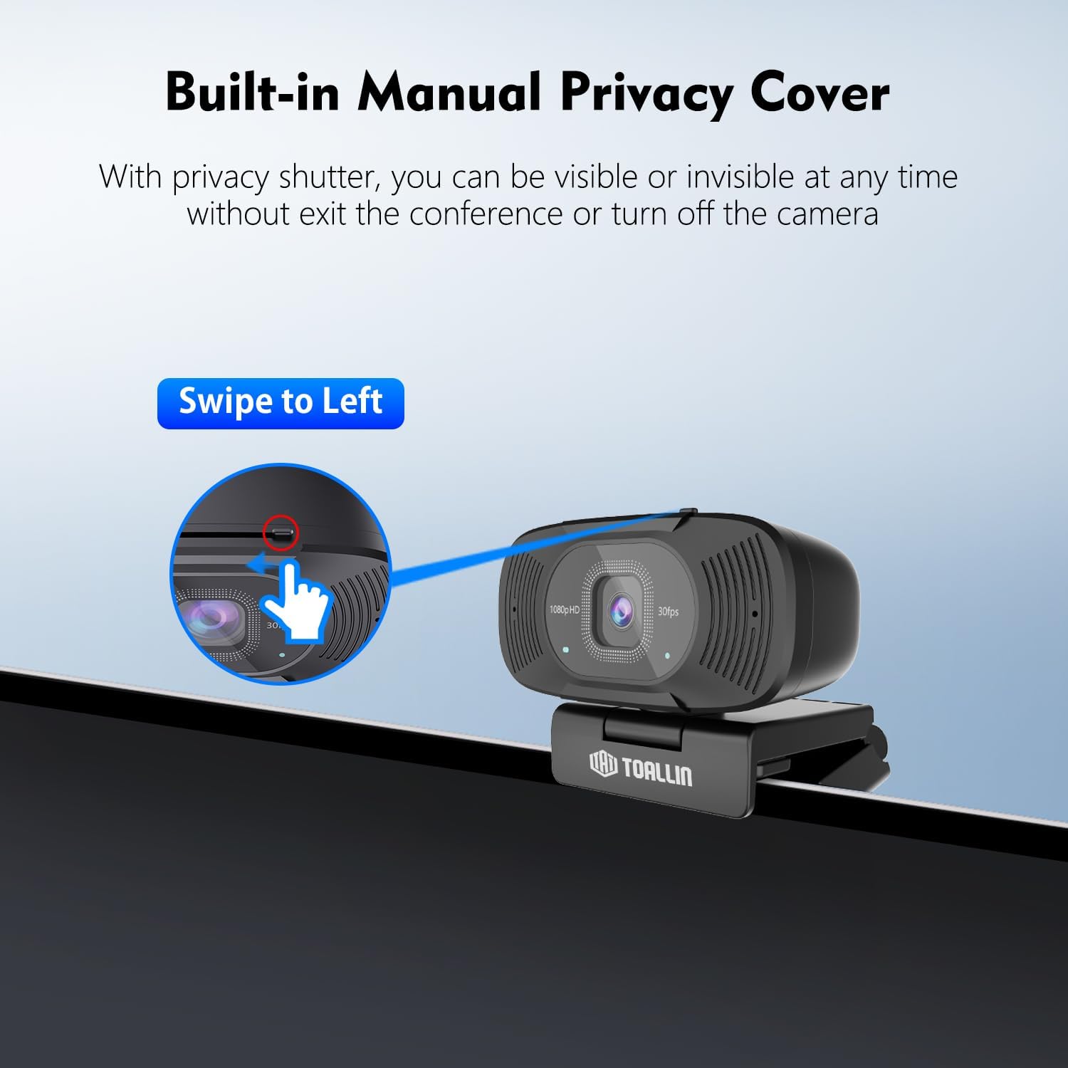 TOALLIN 1080P Full HD-Webcam mit Zwei Mikrofonen 90°-Weitwinkelansicht USB
