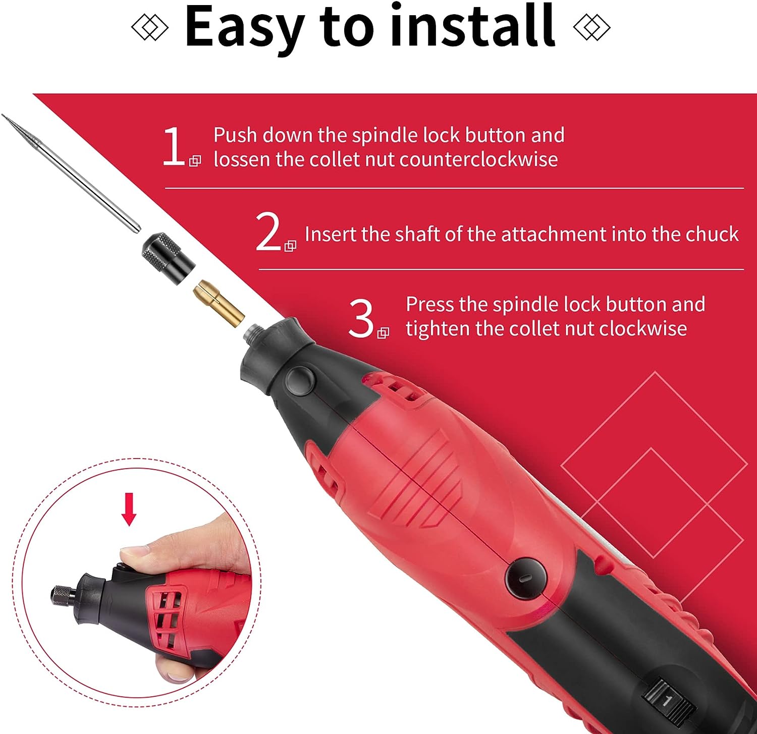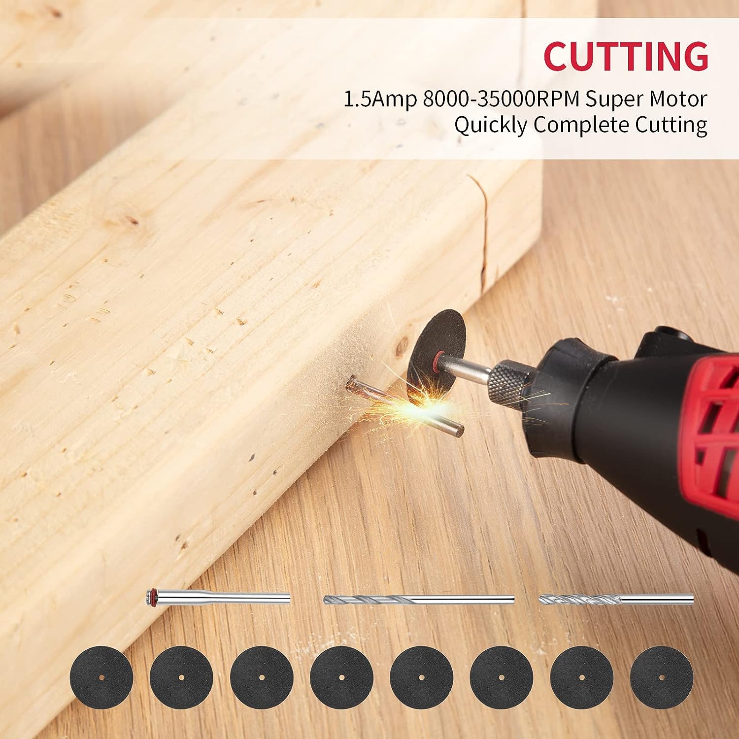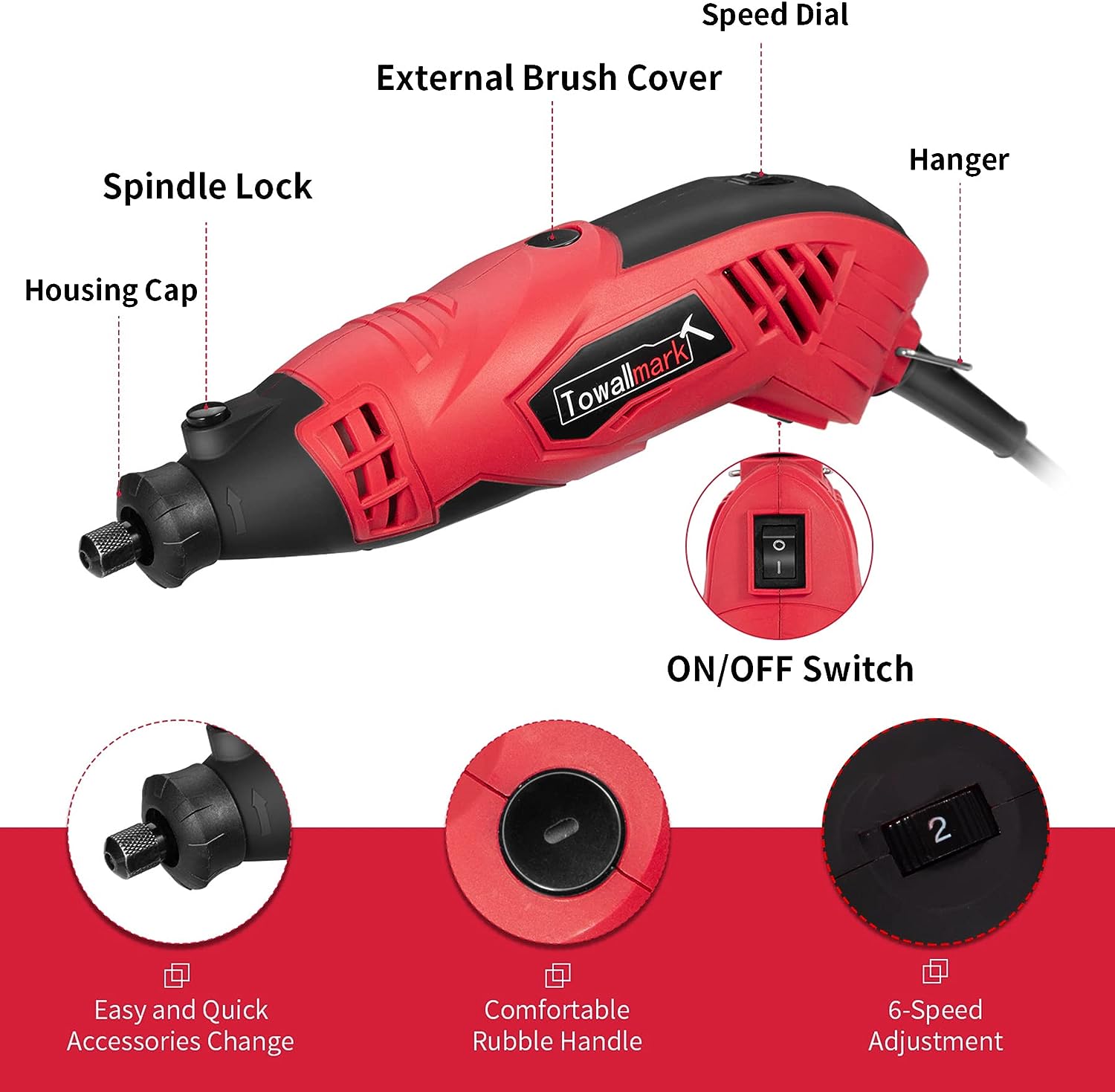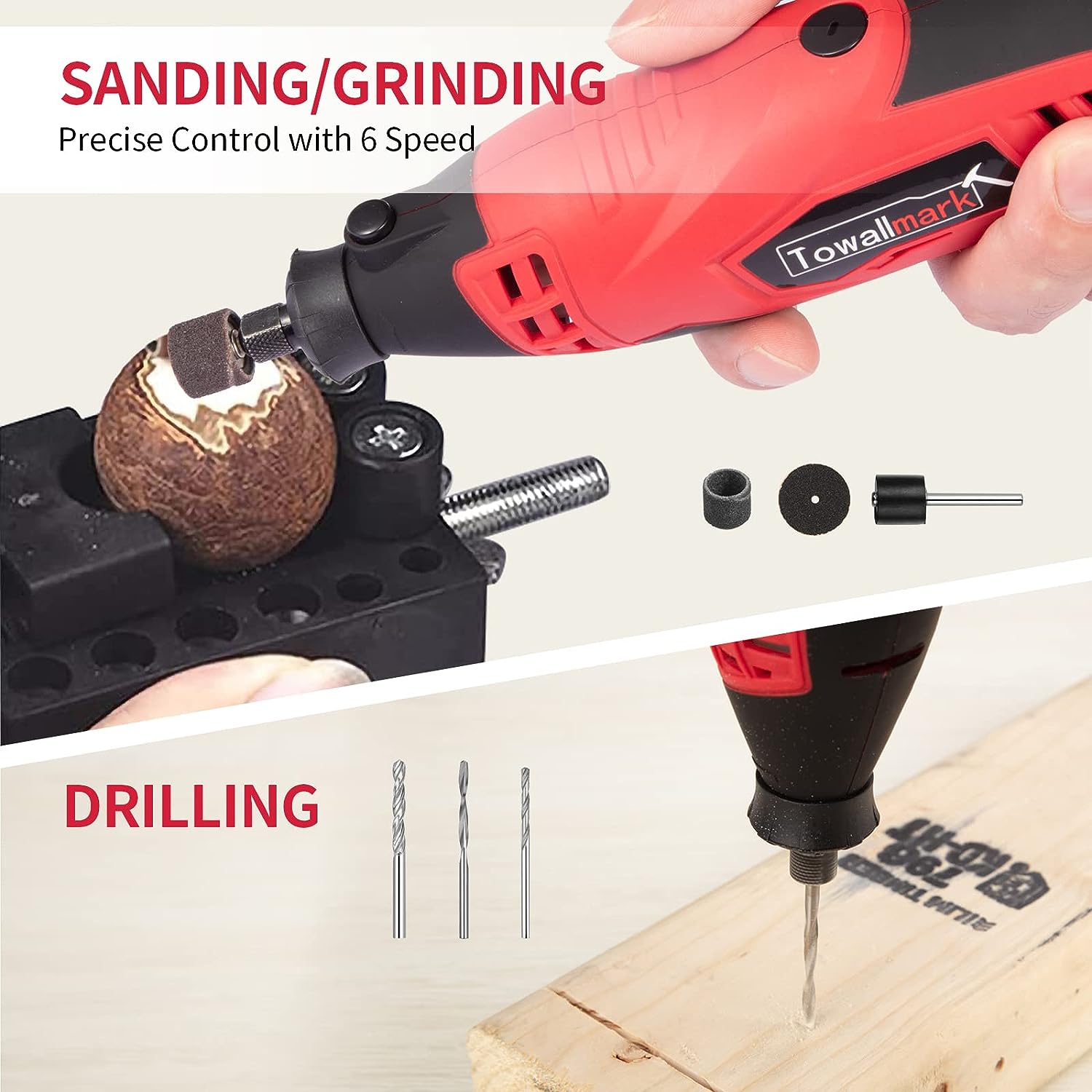 【Erneuerte Leistung】: Angetrieben von einem 160 W 1,3 Ampere Motor, der elektrische Leistung mit starker Rotationskraft und reduziertem Stromverbrauch liefern kann. 6 Stufen Geschwindigkeitsverschiebung von 8.000 U/min bis 35.000 U/min Leistung Ihr DIY-Projekt leicht durchführen.