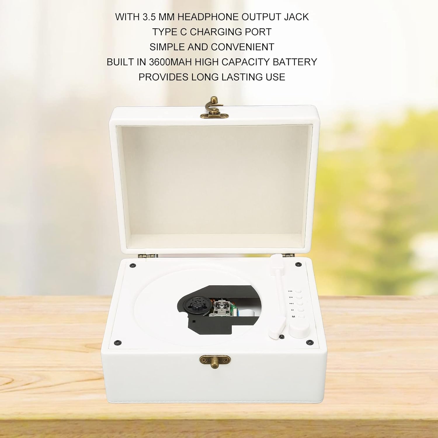 5. TYP-C-LADEANSCHLUSS: Dieser CD-Player verfügt über einen 3,5-mm-Kopfhöreranschluss und einen Typ-C-Ladeanschluss für einfaches und bequemes Spielen. Eingebauter 3600-mAh-Hochleistungsakku für lange Nutzungsdauer.