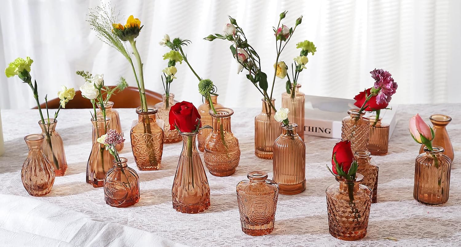 Vase Glas Bernstein Set 10er,Blumenvase Klein Vasen für Tischdeko