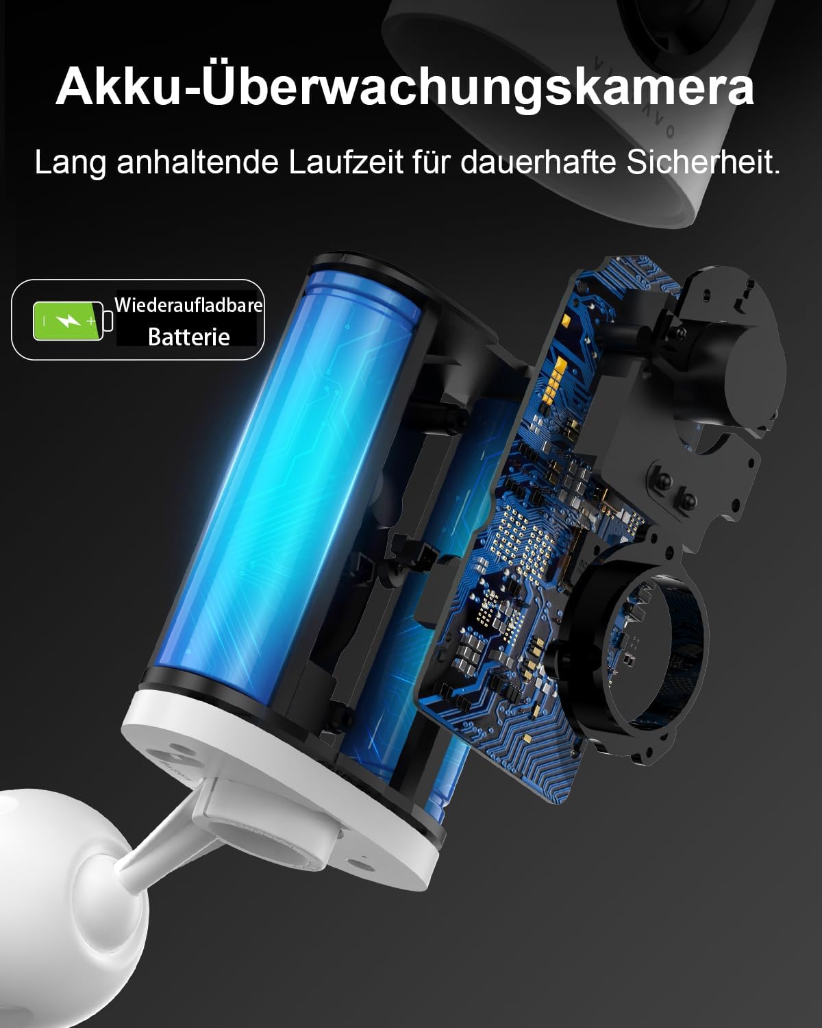 Virtavo 2K Überwachungskamera Aussen Akku Kamera Überwachung Aussen WLAN Kabellos, WiFi Outdoor,außen/innen Farbnachtsicht, Funktioniert mit Alexa, PIR, 2-Wege Audio,Cloud/SD Storage 2.4Ghz Weiß