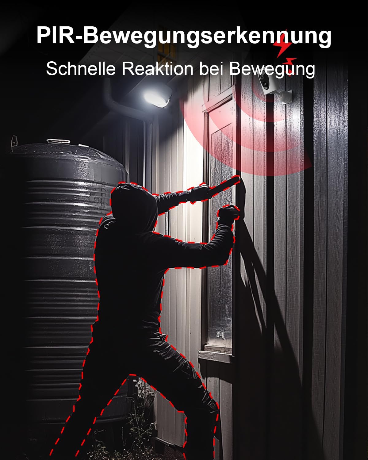 【PIR-Bewegungserkennung & Alarmton】Wenn eine Bewegung erkannt wird, sendet die Kamera einen Alarm und Benachrichtigungen an Ihr Smartphone. Durch Drücken der Sprechtaste können Sie in Echtzeit kommunizieren.
