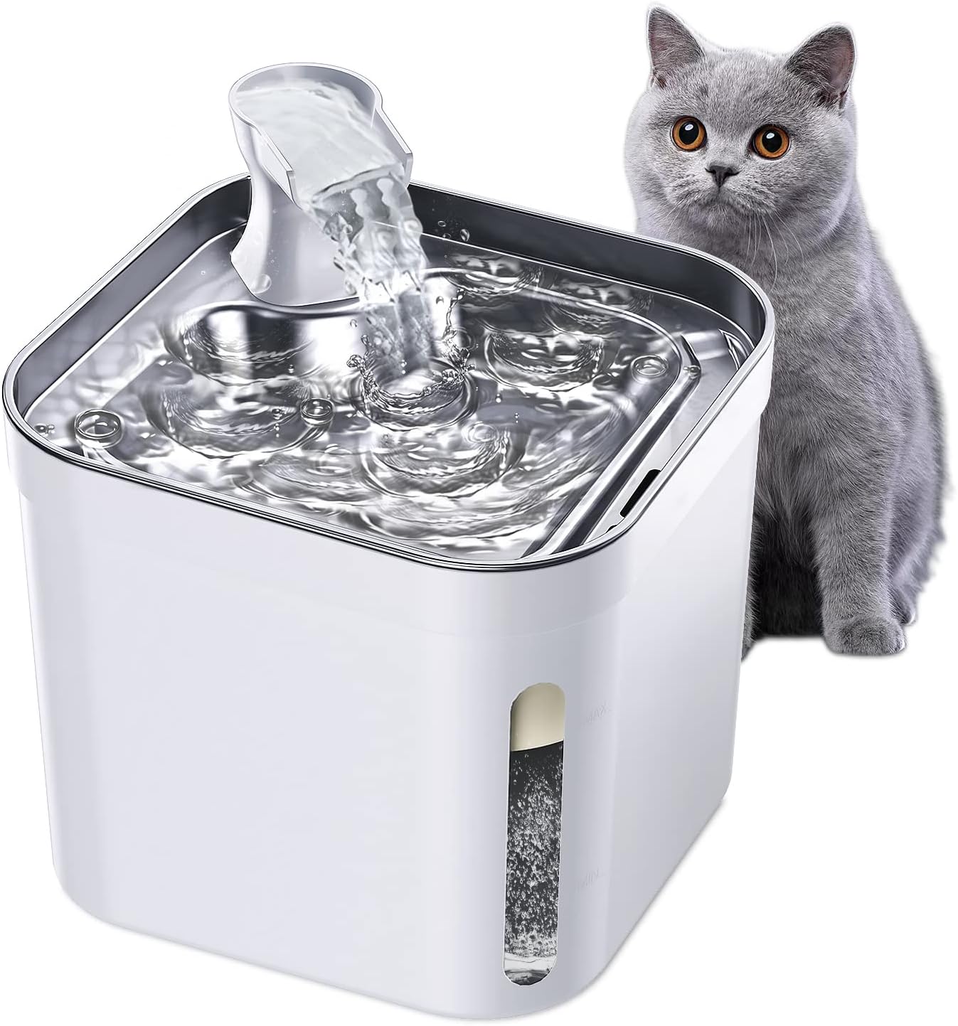 Fontaines à eau pour chats, 67 oz/2 L, Fontaines à eau pour animaux de compagnie, Pompes ultraleiser, Distributeurs d'eau pour chats, chiens, hommes et femmes (2,2 L)