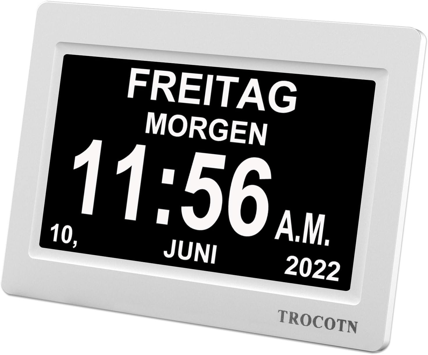 TROCOTN Demenz Uhr Senioren Digital Uhr Tagesuhr Großes Display Wecker Wanduhr (Blanc, 7 pouces)