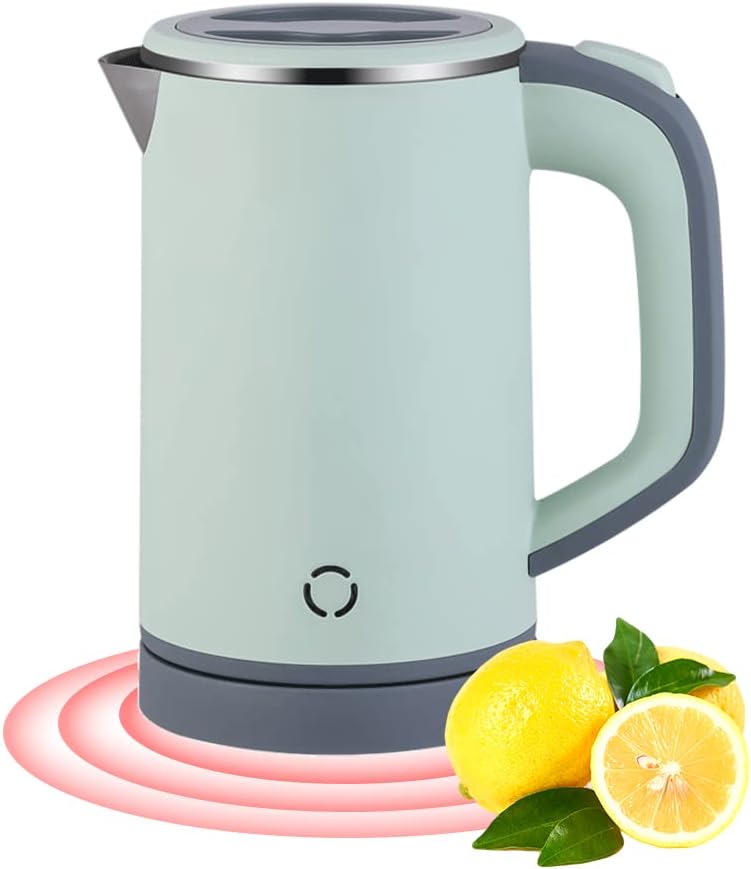 Woolala 0,8 l kleiner elektrischer Wasserkocher, 600 W, schnell kochender Edelstahl-Reisewasserkocher zum Kochen von Wasser, doppelwandiger Teekessel, Trockengehschutz mit automatischer...
