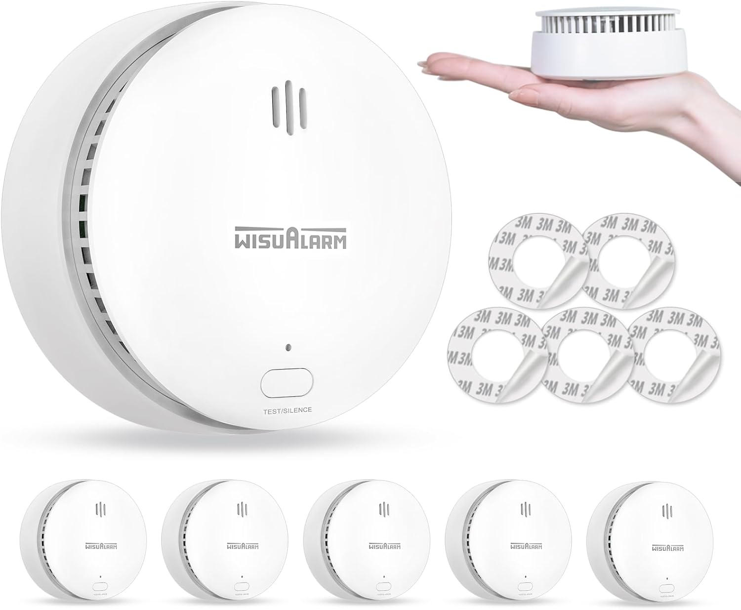 Wisualarm Rauchmelder 10 Jahre Batterie Brandmelder Ohne Bohren, TÜV (5 Stück)