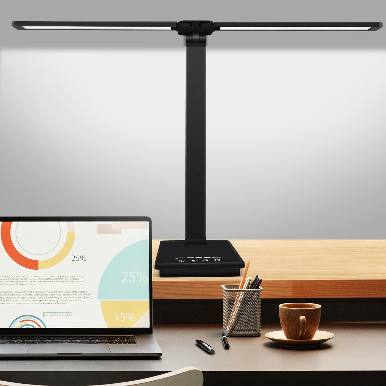 bybule Doppelkopf Schreibtischlampe LED,Tischlampe 5 Farb und 5 Helligkeitsstufenn Touch Control,Desk Lamp mit 45-Minuten Auto-Off Timer USB-Ladeanschluss Table Lamp Schwarz [Energieklasse...