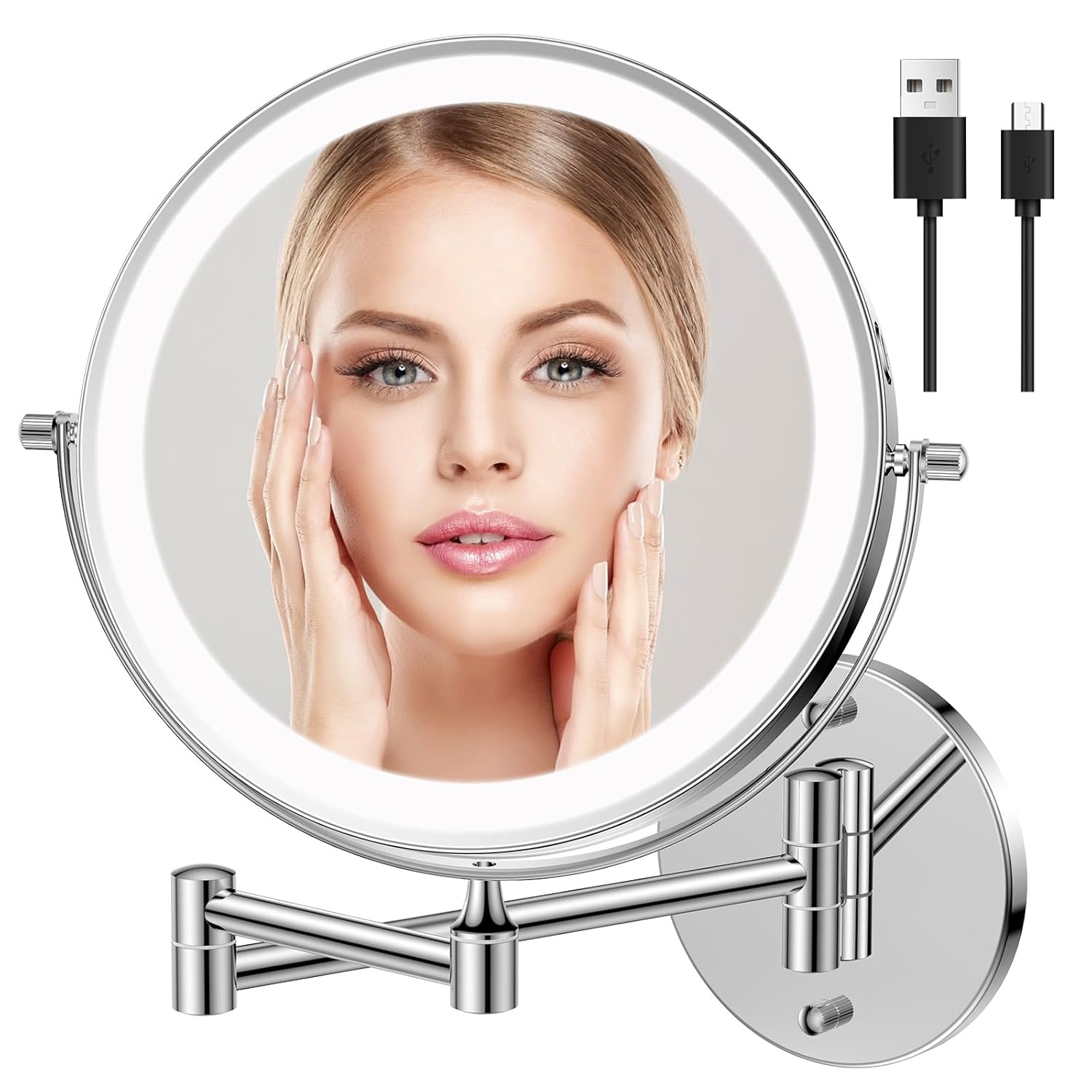 FUNTOUCH Wiederaufladbarer Wand-Make-up-Spiegel mit Lichtern, 1 x 10-fache Wandhalterung, beleuchteter Vergrößerungsspiegel, doppelseitiger Wandspiegel für Badezimmer, 3 Farblichter, dimmbar, Marke FUNTOUCHZimmerart ...