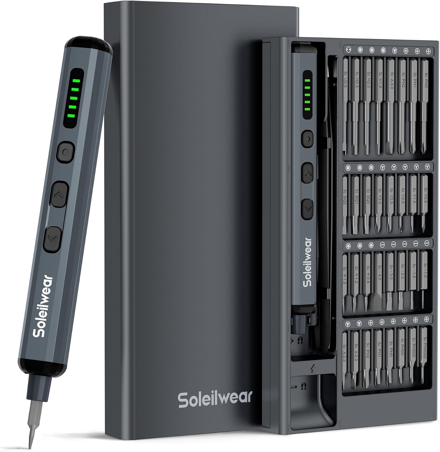 Soleilware Mini Elektro Schraubendreher Set, 70 in 1 Akku Schraubendreher mit 64 S2 Magnetische Stahlbits, 5 Gänge Drehmoment, Präzisionsschraubendreher Kit...