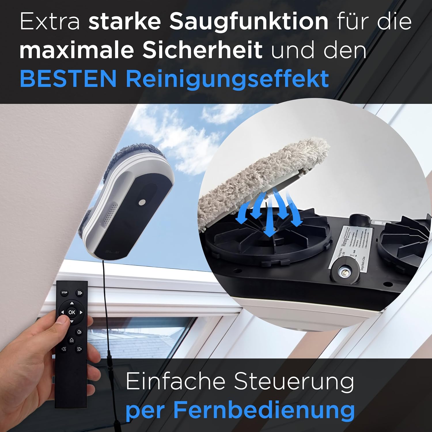 ORME. Robot de nettoyage intelligent de vitres, robot de nettoyage de vitres avec jet de lave-glace intelligent bidirectionnel, taille fine de 7 cm, 5600 Pa Saugleistung und App-Steuerung