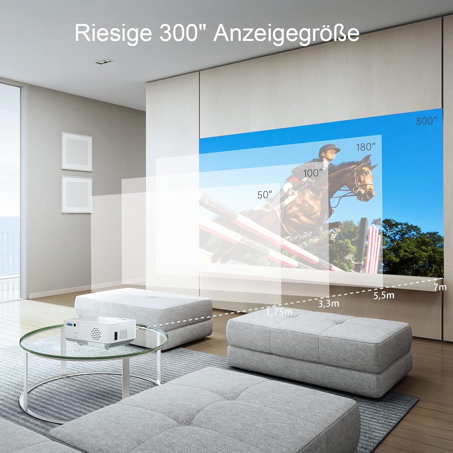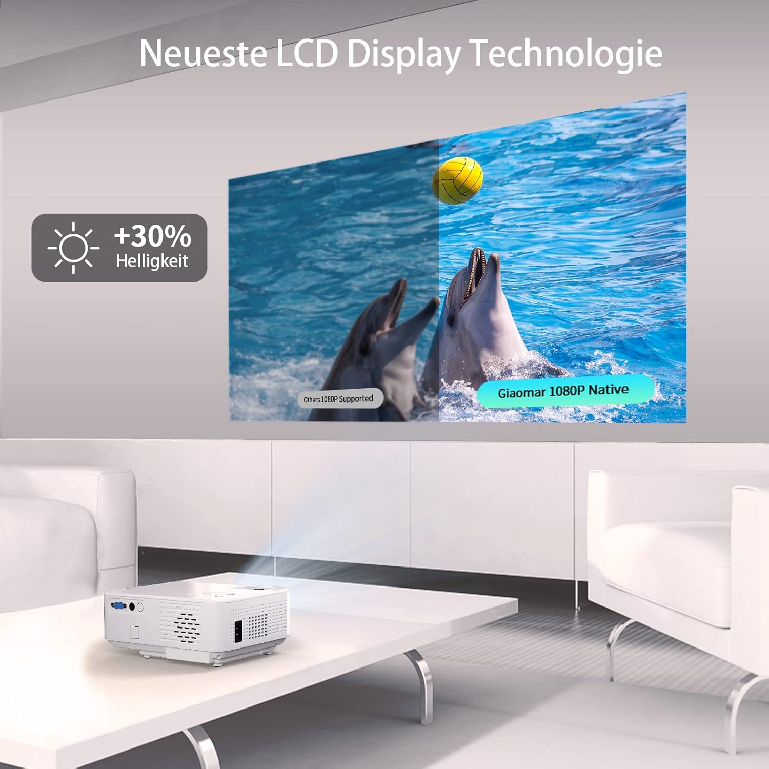 Giaomar Beamer, 5G Full HD, 9500 Lumen Native 1080P 4K Heimkino