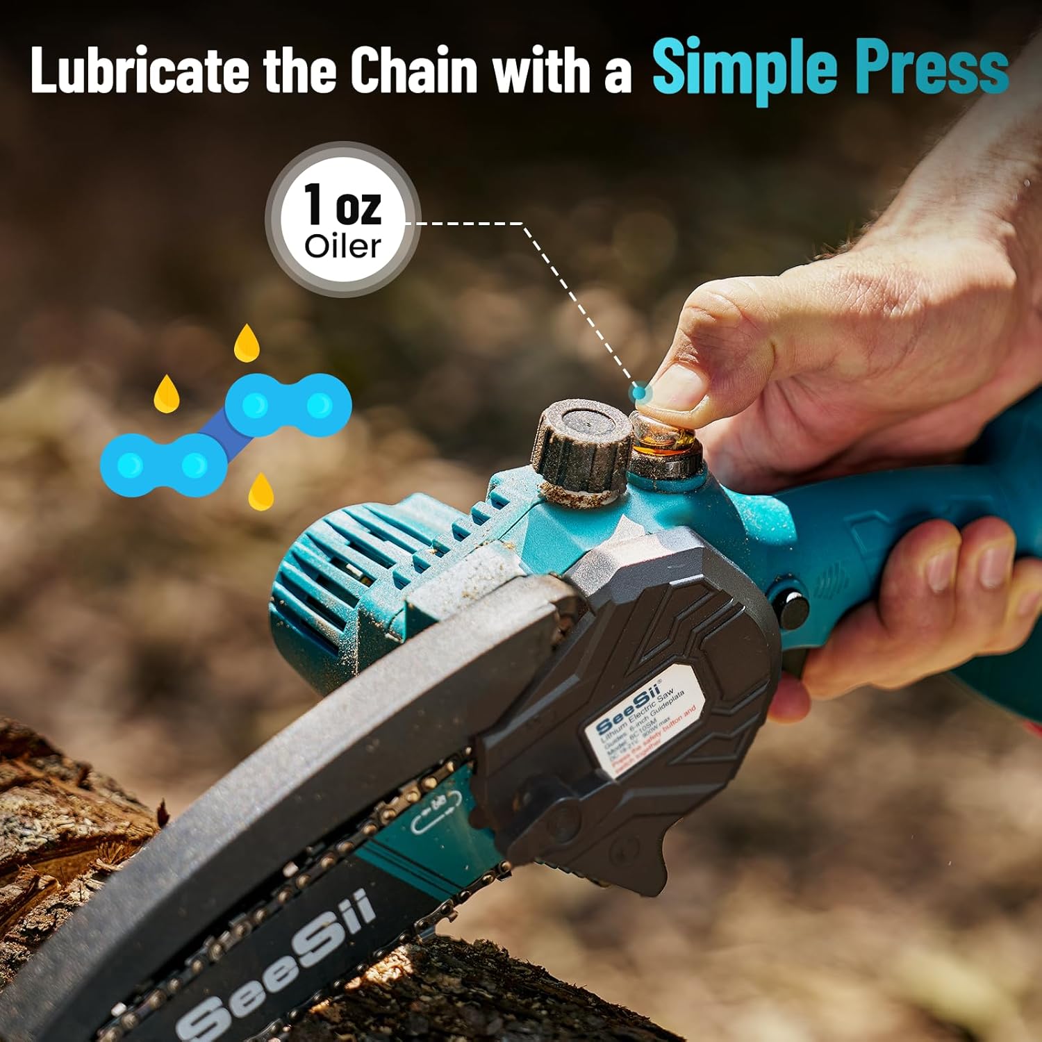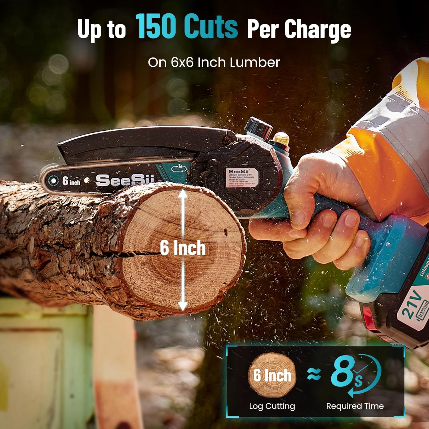 SeeSii Mini Kettensäge avec batterie 8000mAh 6 pouces avec 2 batteries 4000mAh,