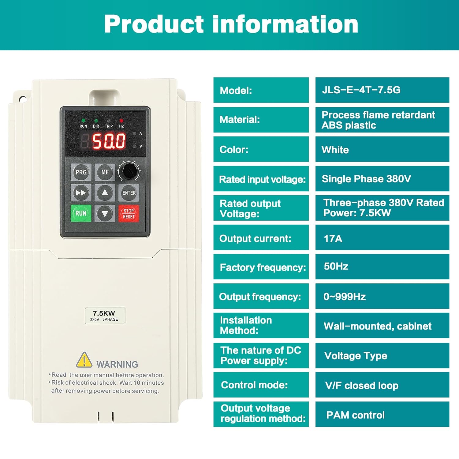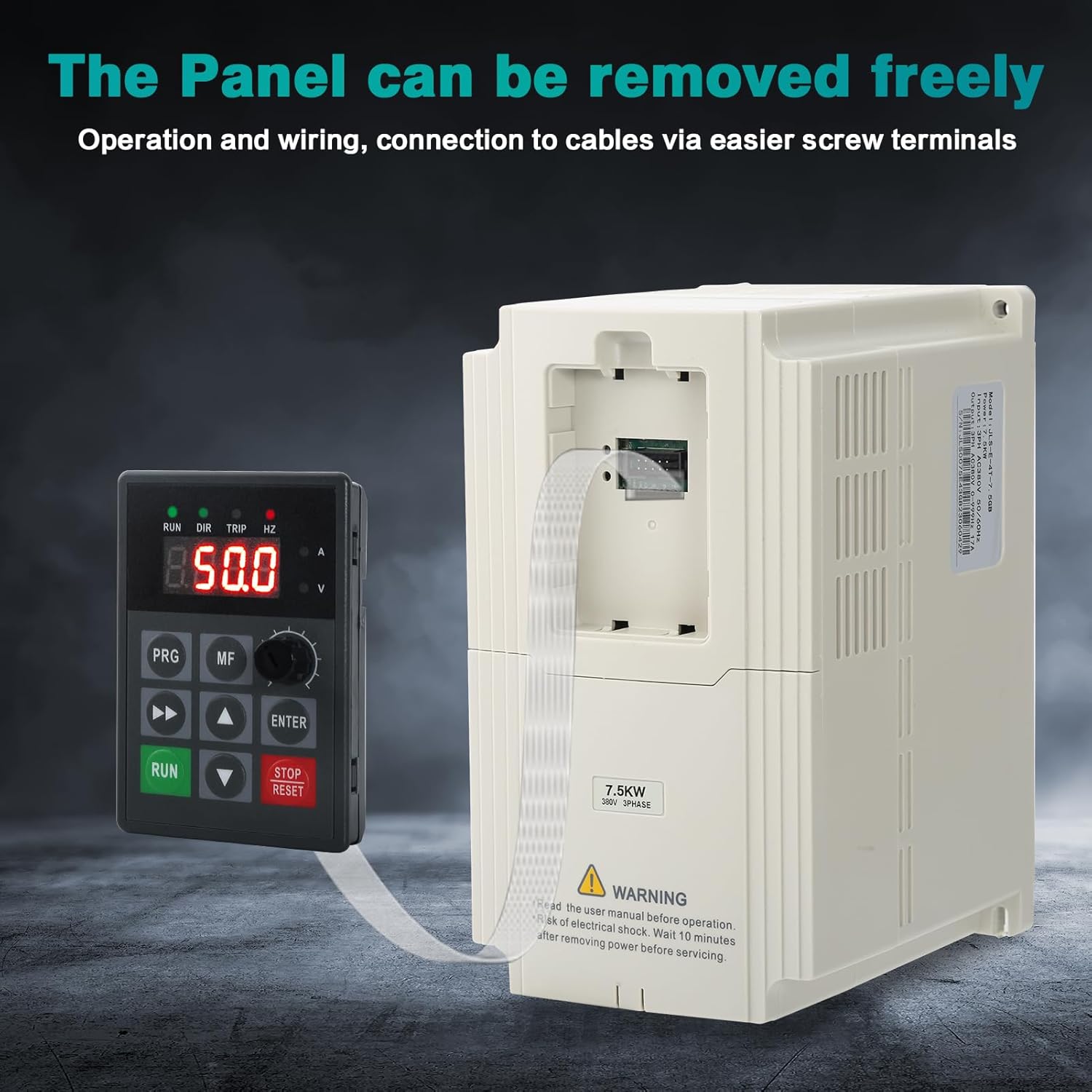 7.5KW Frequenzumrichter 400V Drehzahlregler 400V Motor VFD 3 Phasen Eingangs Ausgangs 380V Frequenzumrichter auf CNC Werkzeugmaschinen Kugelmühlen Brecher usw (mit 2M Verlängerungskabel)