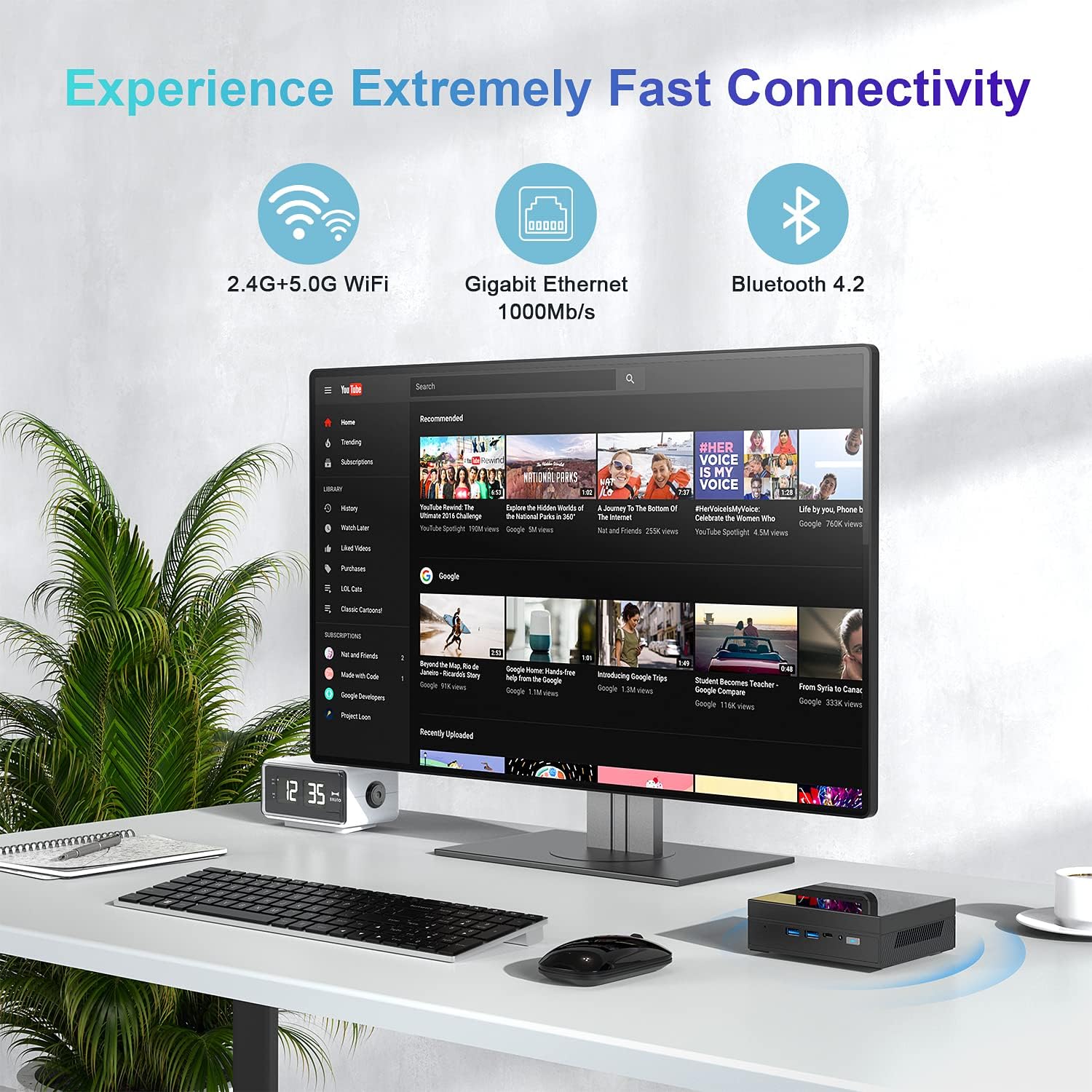 Klein und tragbar: Der ALLIWAVA N5105 Mini-PC misst 4,96 x 4,45 x 1,62 Zoll. Sie können ihn in Ihre Businesstasche stecken und flexibel mitnehmen.