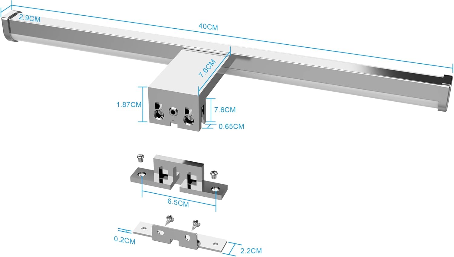 Produktmerkmale 1. IP44 LED Spiegellampe für Badezimmerbeleuchtung;, 2. LED Spiegellampe 10W 4000K neutralweiß, Länge 40CM (400mm);, 3. LED Badspiegelleuchten mit mehreren Installationsmethoden können an Spiegeln, Schränken und Wänden installiert werden.