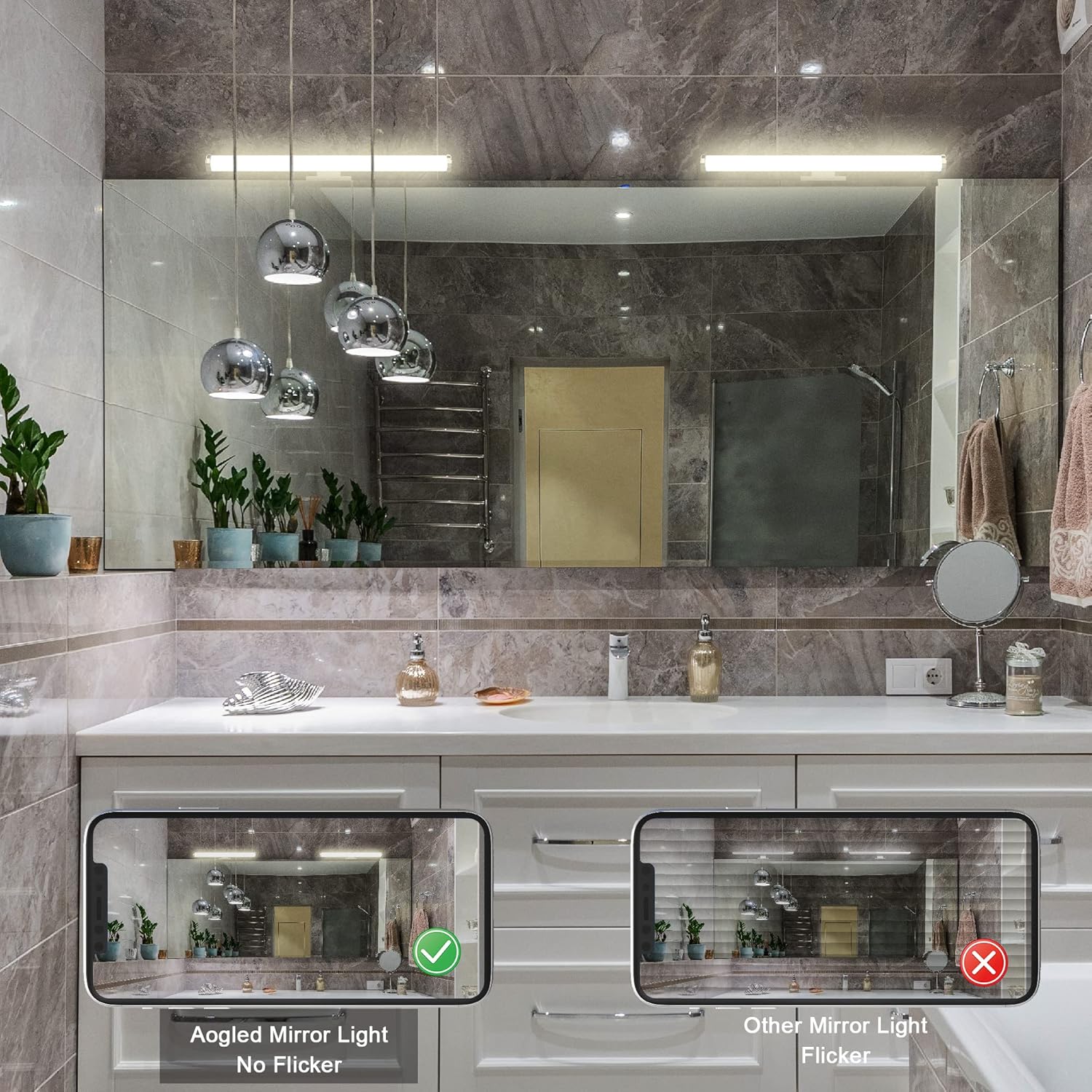 【40 CM Lange LED Spiegelleuchte mit Integriertem LED-Modul, Leistung: 10W 1200LM 230V】 Einfache Installation und kein Transformator erforderlich. Aogled Spiegellampe sind nicht dimmbar und flackern nicht. Hoher CRI>82Ra. Die Helligkeit der Spiegellampe reicht zum Schminken, Rasieren etc.
