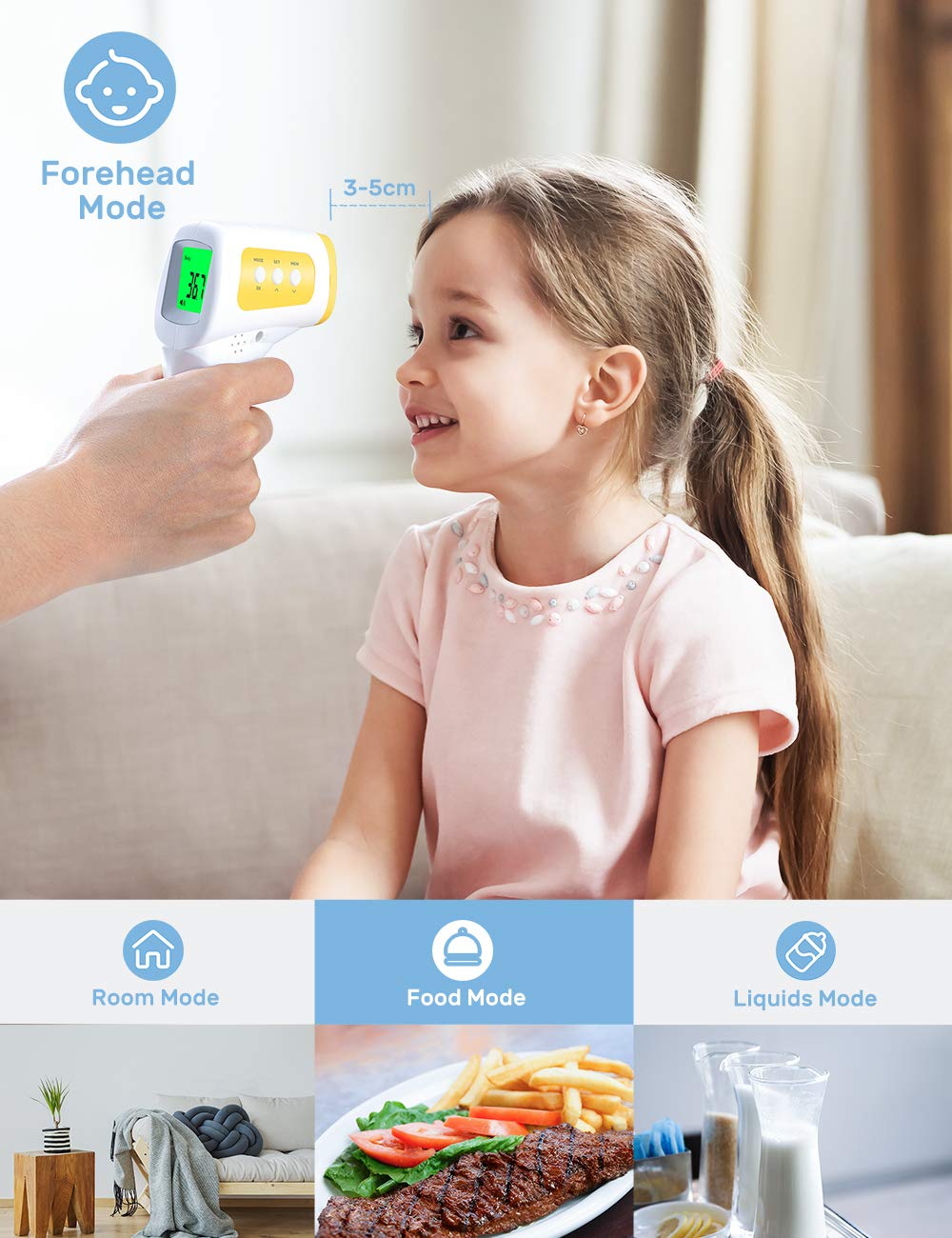 - Mehrere Messmodi – dieses Thermometer ist für alle Altersgruppen, Säuglinge, Erwachsene und ältere Menschen geeignet. Es unterstützt nicht nur Stirn- oder Ohrfunktion, sondern ist in der Lage, Raum-/Objekttemperatur zu nehmen. Gleichzeitig sind °C und F leicht zu wechseln und haben einen stillen Modus.