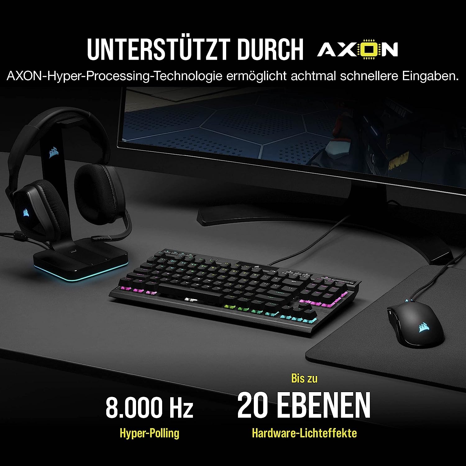 • CORSAIR AXON Hyper-Processing-Technologie: Verarbeitet und überträgt Eingaben bis zu achtmal schneller als herkömmliche Gaming-Tastaturen – mit 8.000-Hz-Hyper-Polling, 4.000-Hz-Tastenscanning