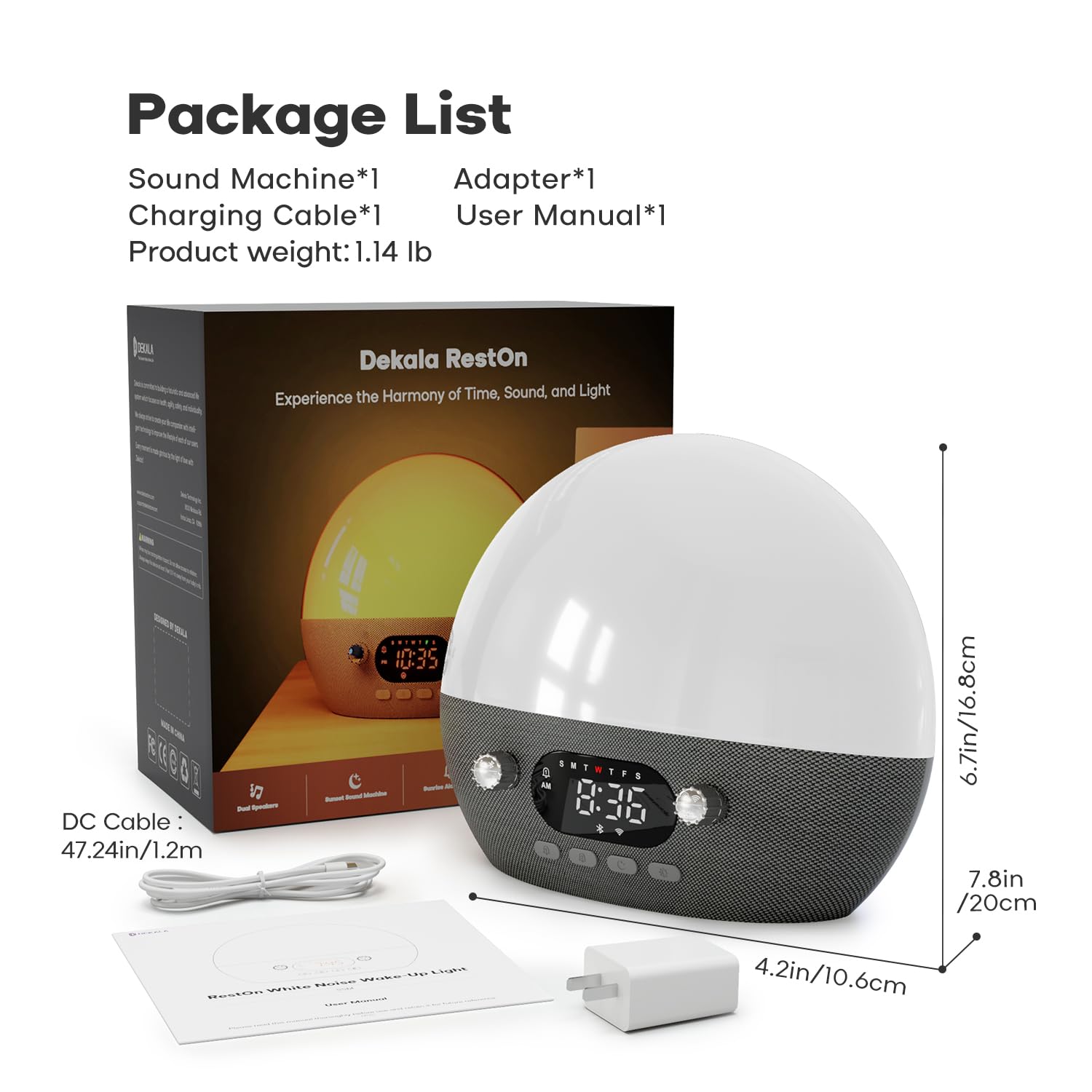 Dekala White Noise Machine, APP-Steuerung Wecker, 11 beruhigende Klänge, Nachtlicht, Sonnenuntergang-Soundmaschine für Babys, Erwachsene, Kinder