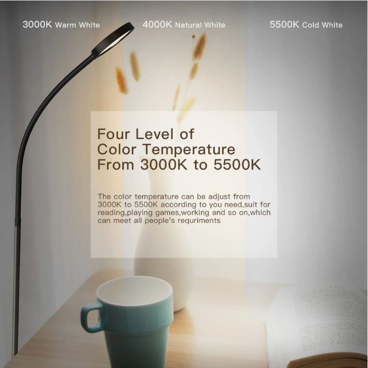 4 LED-Farbtemperatur und stufenloses Dimmen einstellen Zusätzlich zur stufenlosen Helligkeitseinstellung verfügt die dodocool-Stehlampe über 4 verschiedene farblich einstellbare Temperatureinstellungen. Kaltweiß, Naturweiß, Warmweiß und Warm (von 2500 K bis 6000 K).