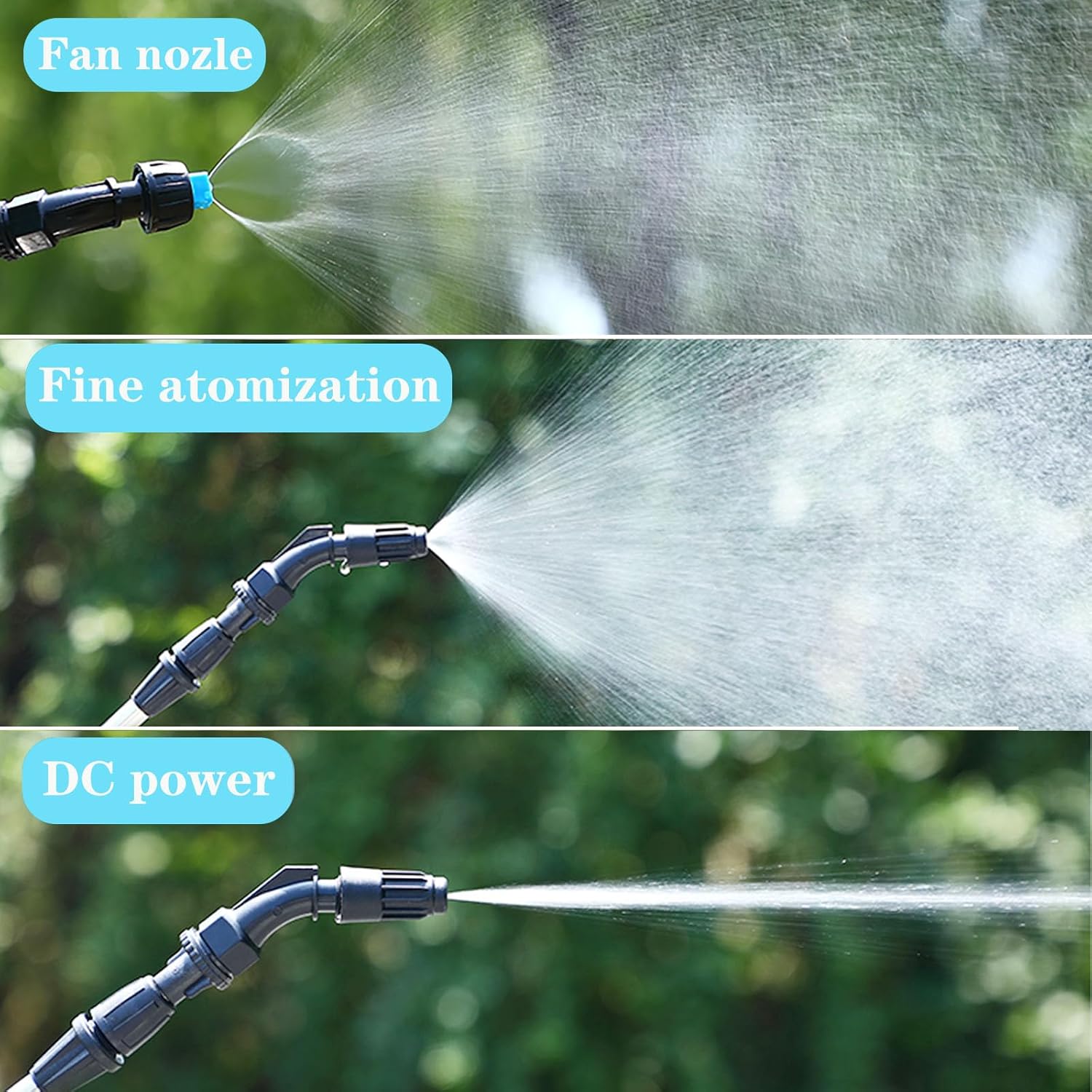 Verstellbare Düse: Der Akku-Gartensprüher umfasst 3 Düsen: eine Sektordüse, eine verstellbare Messingdüse und eine leistungsstarke verstellbare 6-Loch-Düse. Mit 5 verschiedenen Sprühmustern können Sie problemlos zwischen Nebel- und Wasserstrahlmodus wechseln, um empfindliche Pflanzen zu bewässern, Ihren Rasen zu pflegen, Unkrautvernichter zu beseitigen oder Ihr Zuhause zu reinigen. Durch Einstellen des Düsenmodus kann die Verwendung der Sprühdose weiter erweitert werden, um unterschiedlichen Arbeitsanforderungen gerecht zu werden