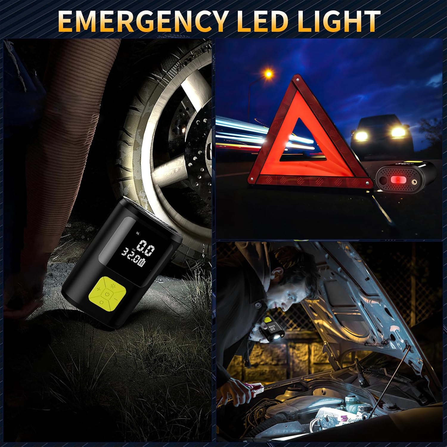 [LCD-Bildschirm und LED- Taschenlamp] Der elektrische reifenpumpe verfügt über einen großen LCD-Bildschirm mit digitaler Anzeige, der klarer und heller. die nicht nur Ihr Auto aufblasen, sondern auch Ihr Mobiltelefon aufladen und als Taschenlampe fungieren kann. Die Taschenlampe verfügt außerdem über drei Modi (Beleuchtung, Strobe, SOS) Notlicht auf elektrisch luftpumpe fahrrad, geeignet für Notfälle am Straßenrand und in der Nacht.