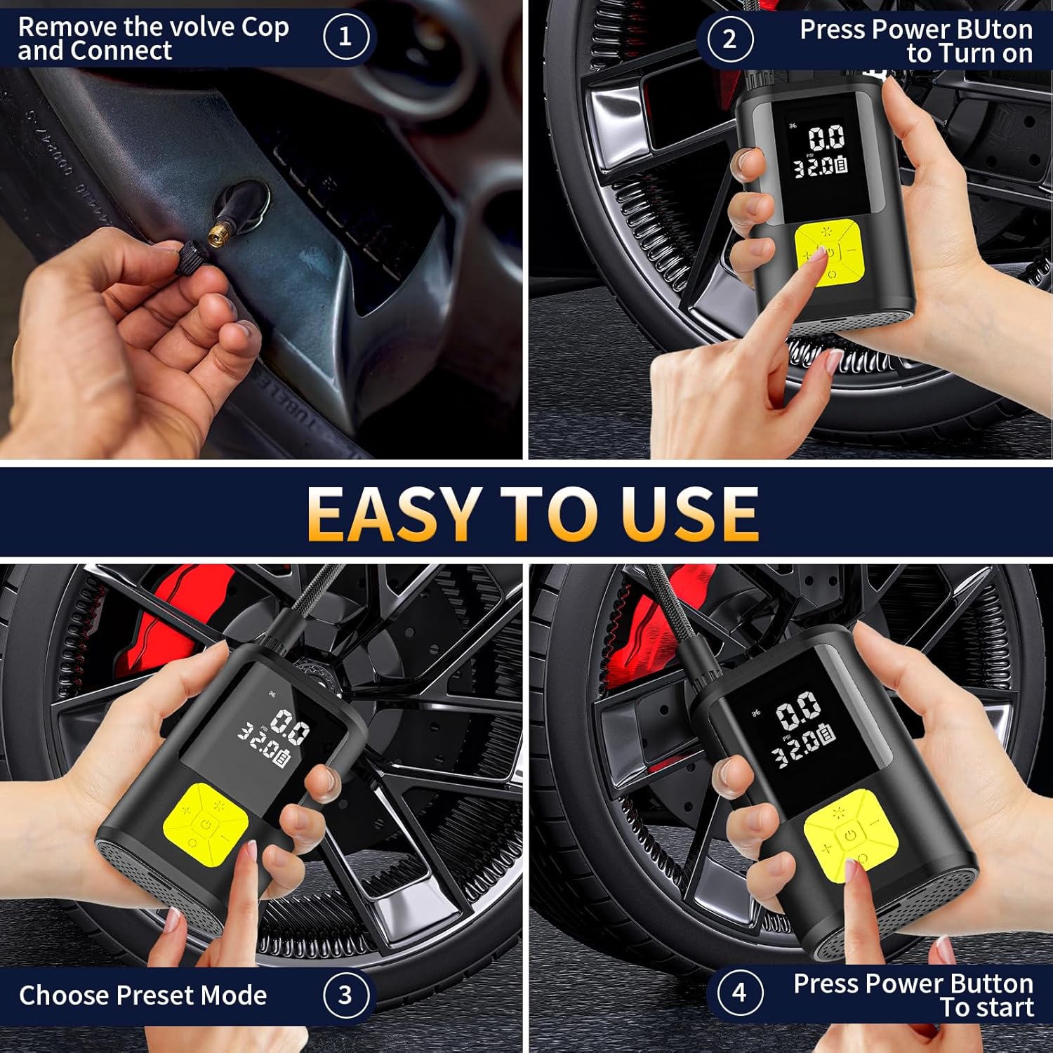 [150PSI - Betäubungsleistung] EVARYOO tragbare elektronische Luftpumpe bietet einen maximalen Druck von 150 PSI und einen Luftstrom von 32 L/min. Es kann Autoreifen in 9 Minuten, Motorradreifen in 3 Minuten, Fahrradreifen in 90 Sekunden und verschiedene Bälle in 50 Sekunden vollständig aufpumpen.