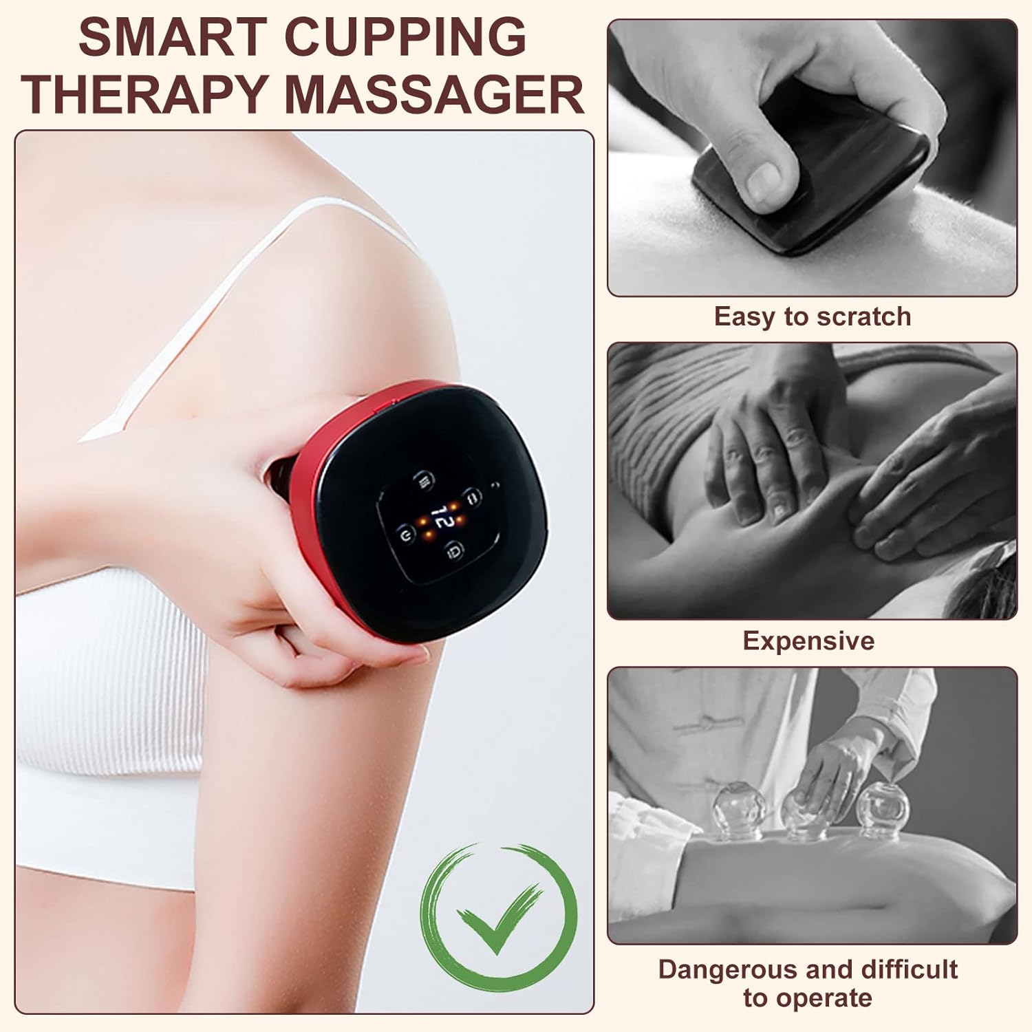 Fanximan Elektrisches Schröpfmassagegerät Schröpftherapie mit 12 Gängen Vakuum Rot
