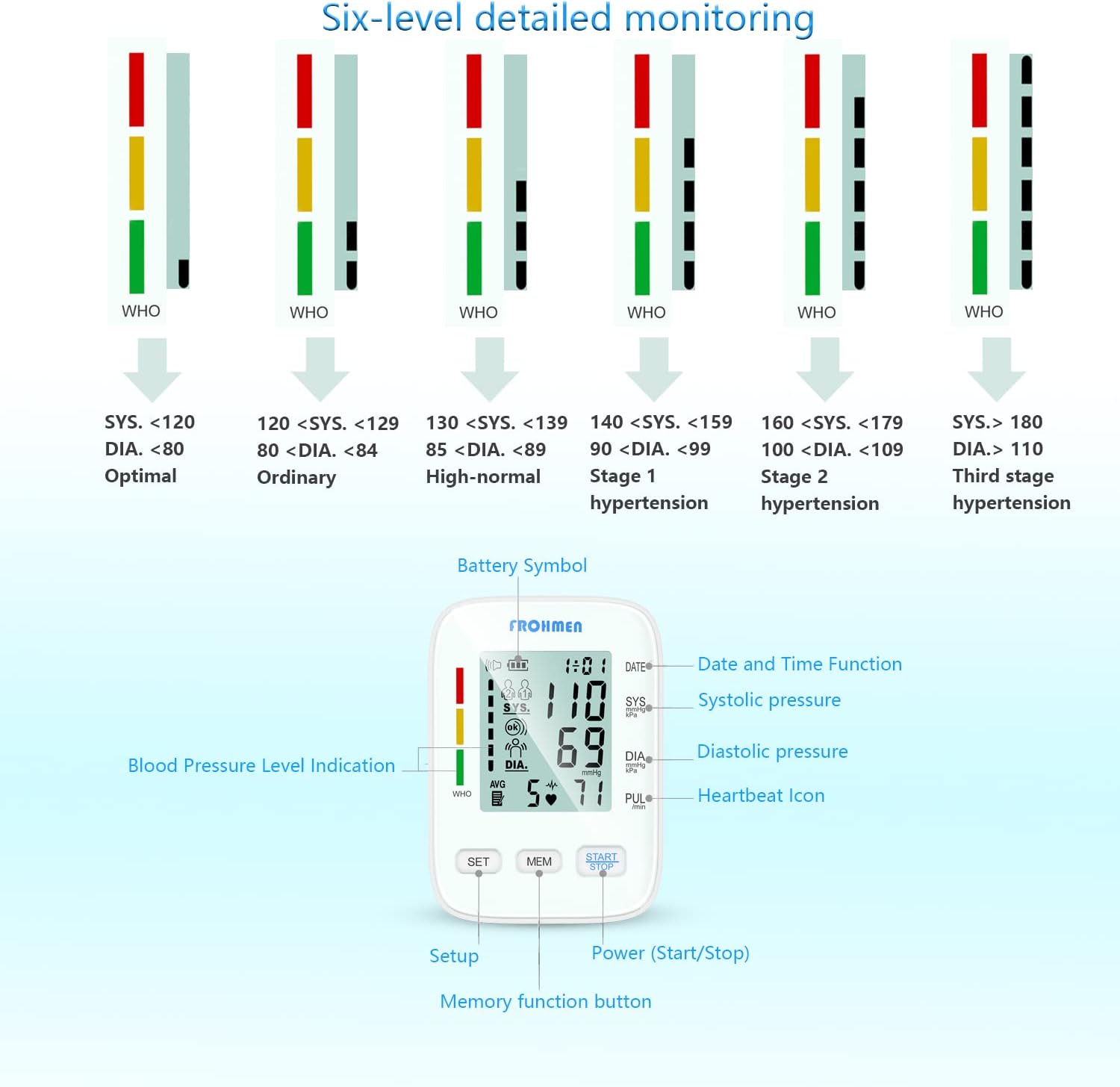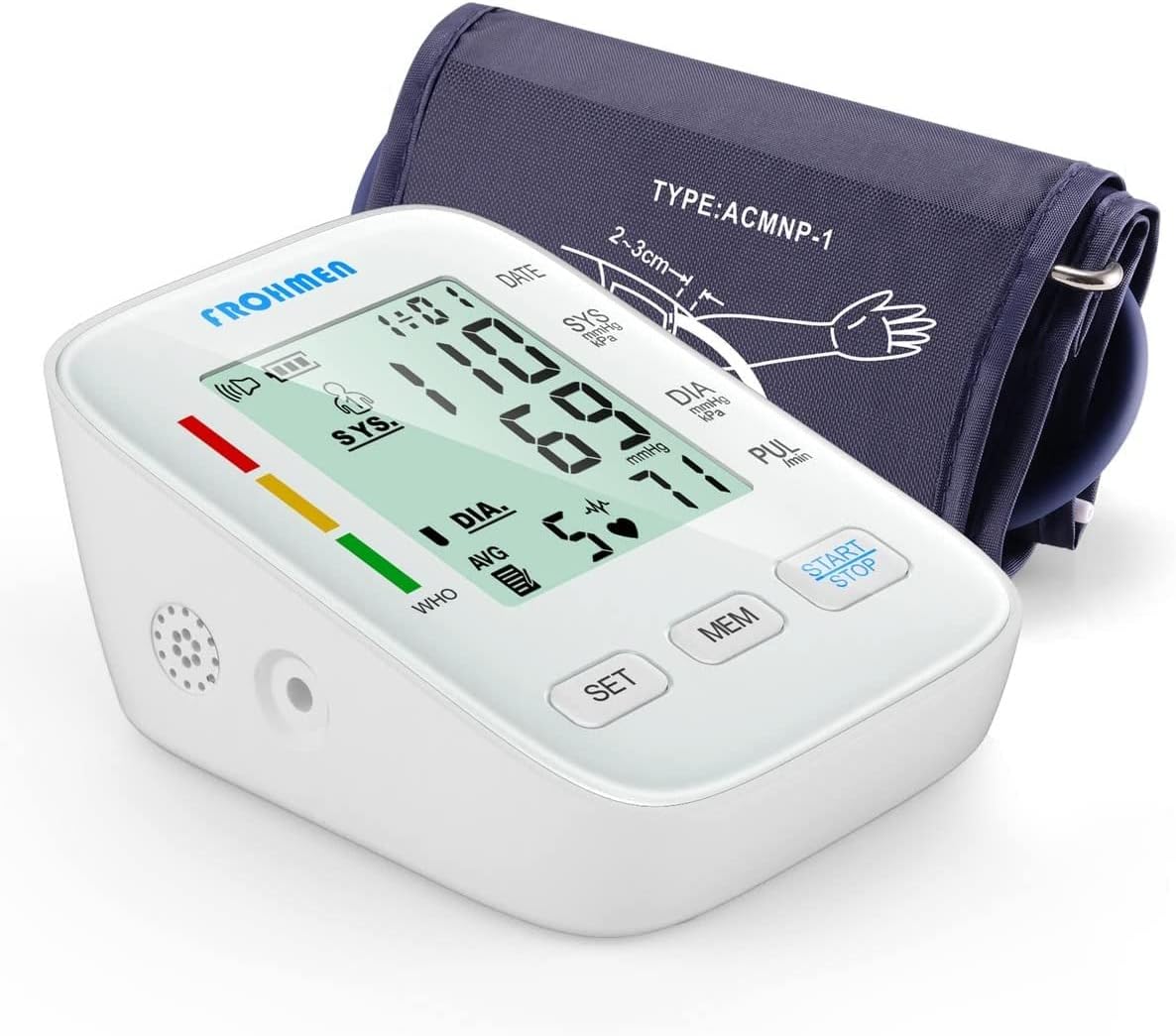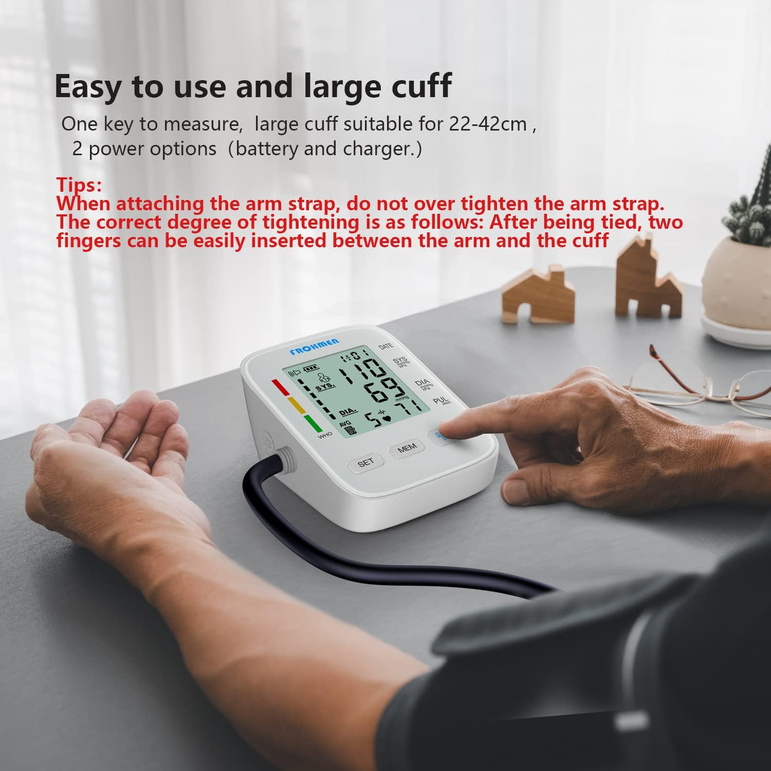 Frohmen Oberarm-Blutdruckmessgerät, digitales Blutdruckmessgerät zur Blutdruck- und Pulsmessung, großer LCD-Acryl-Bildschirm