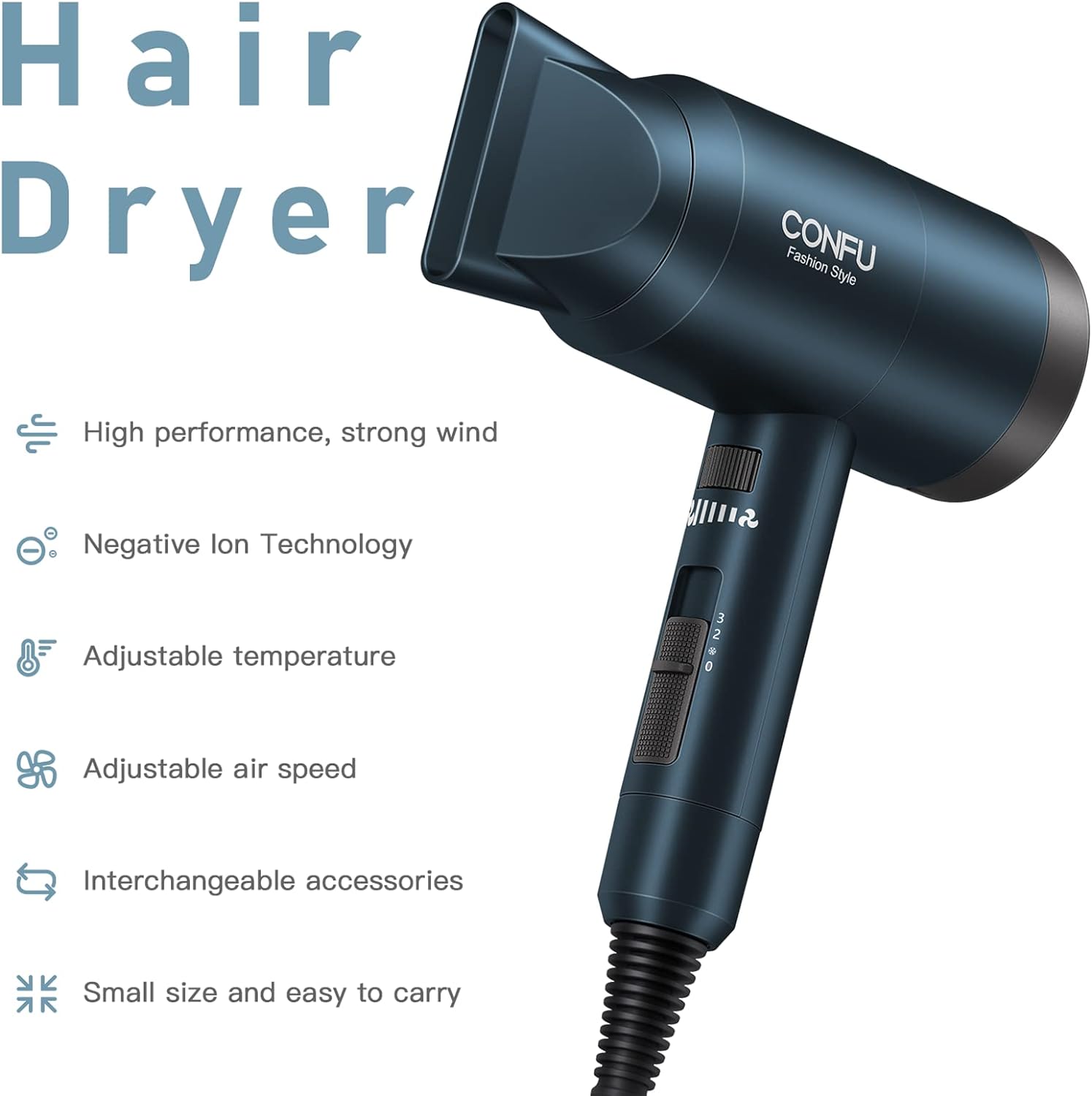 【Ionen-Thermostat-Haarpflege-Haartrockner】 CONFU-Ionen-Haartrockner. Er kann das Haar tiefgreifend vor Schäden schützen und gleichzeitig das Haar mit Feuchtigkeit versorgen, Spliss beseitigen, Proteinschäden reduzieren und die natürliche Feuchtigkeit im Haar aufrechterhalten, wodurch das Haar glatt und seidig wird.