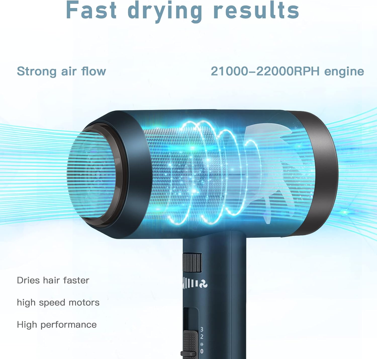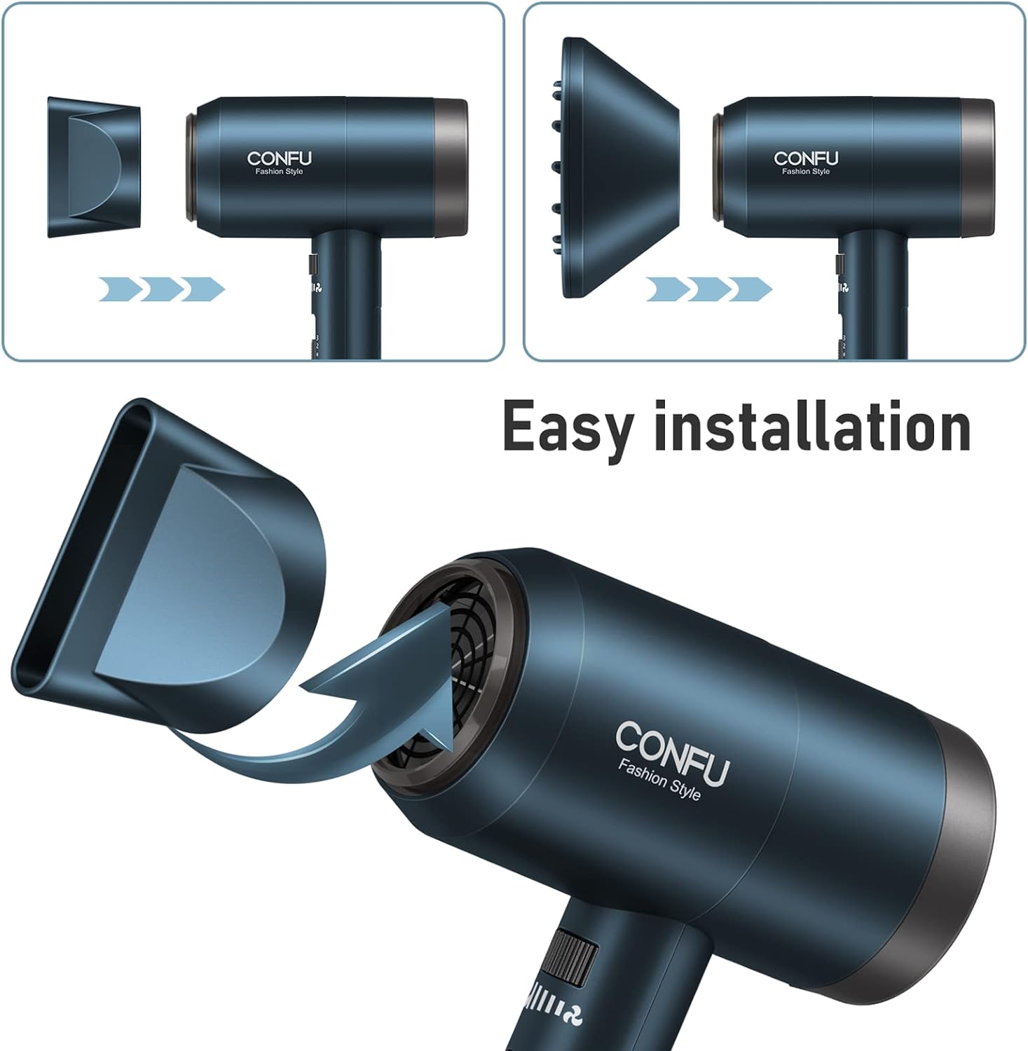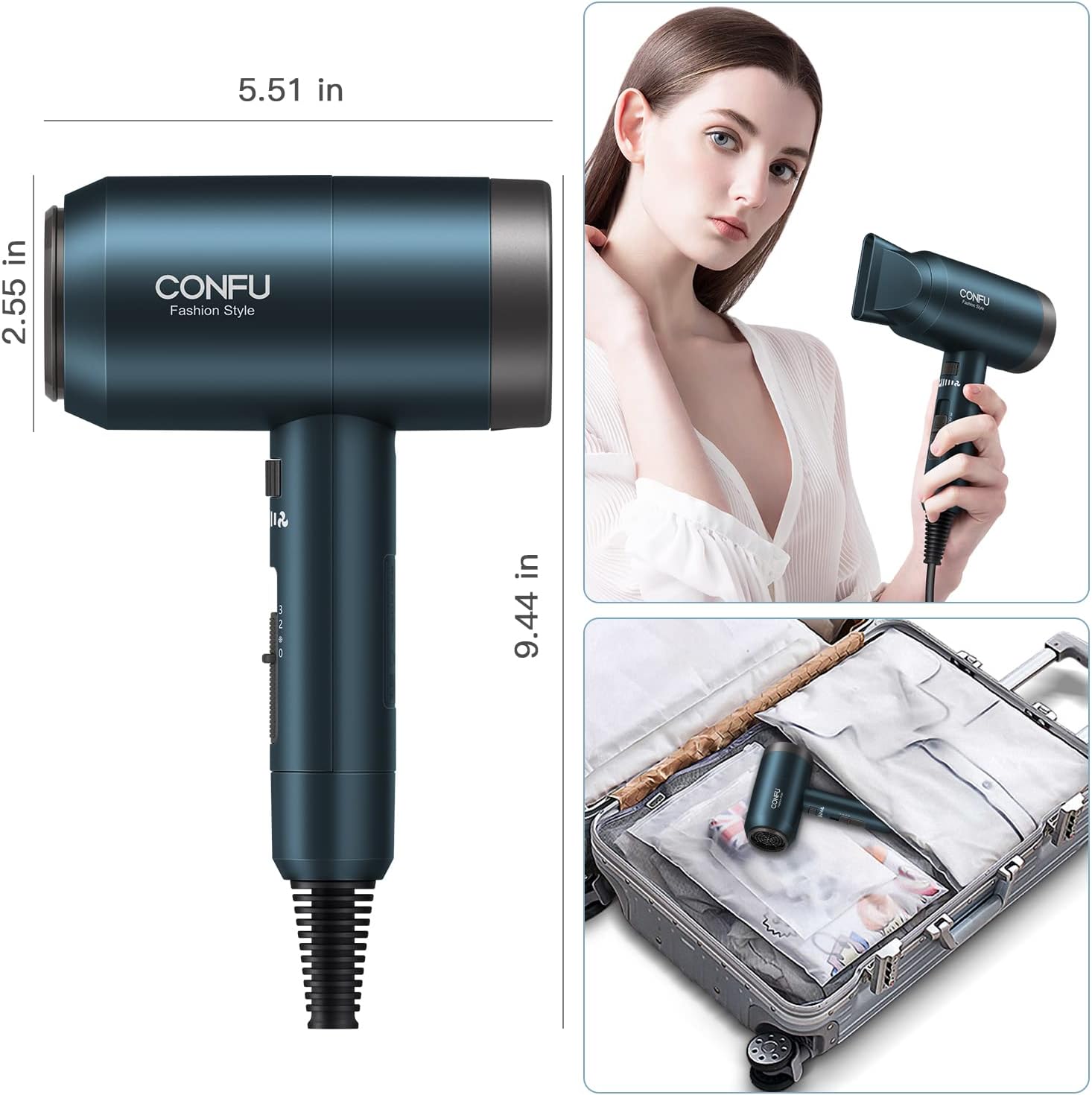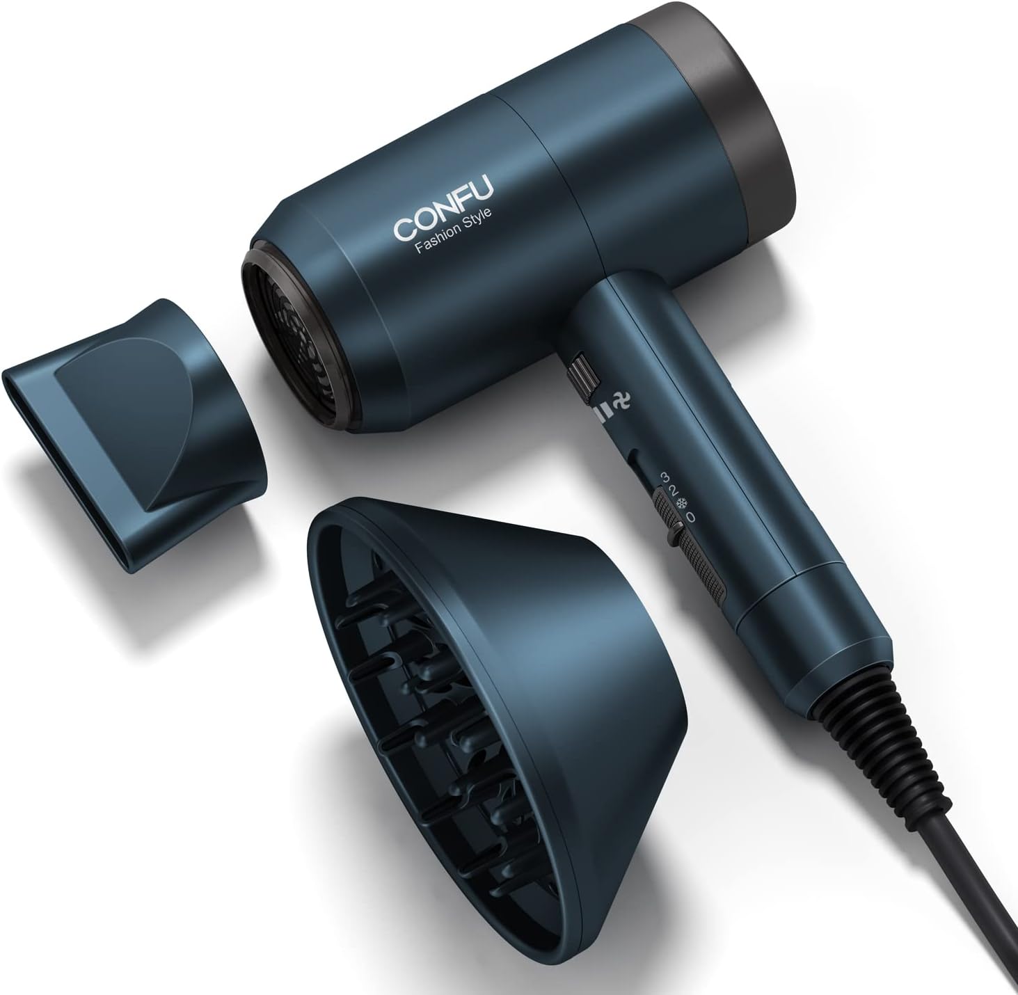 【3 Heizeinstellungen und kontinuierliche Geschwindigkeitsänderung】 Der CONFU-Haartrockner verfügt über drei Temperatureinstellungen: kalt / warm / heiß. Kontrollieren Sie die Temperatur und die Windgeschwindigkeit, um Ihre Lieblingsfrisur zu Hause zu kreieren. (Warme Tipps: Bitte achten Sie darauf, dass Ihre langen Haare nicht ausgesaugt werden in die hintere Abdeckung des Haartrockners, wenn Sie langes Haar haben).
