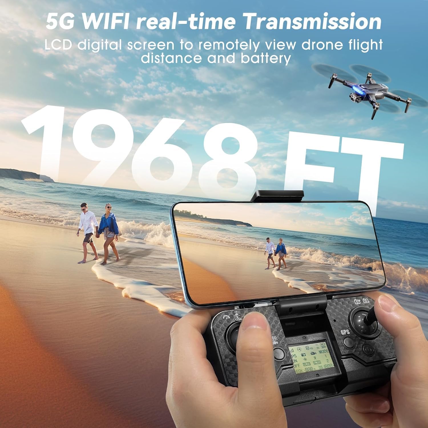 【Multifunktionsflug】 Drücken Sie den Joystick, um verschiedene Flugspaßmöglichkeiten freizuschalten, wie z. B. automatisches Folgen, Flugbahnflug, Schwebeflug, Gestenfoto, 3 Geschwindigkeiten und mehr. Der übersichtliche Visualisierungsbildschirm ermöglicht Ihnen einen schnellen Überblick über Flugmodus, Reichweite, Signal und Batteriestatus, besonders geeignet für Langstreckenflüge