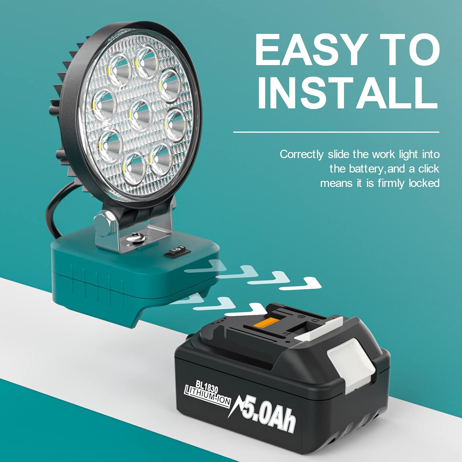 BETRIEBEN DURCH MAKITA BATTERIE: Schnurloses LED-Arbeitslicht, kompatibel mit Makita 18V LXT Lithium-Ionen-Akkus BL1860 BL1850 BL1840 BL1830 und mehr (Batterie nicht im Lieferumfang enthalten).