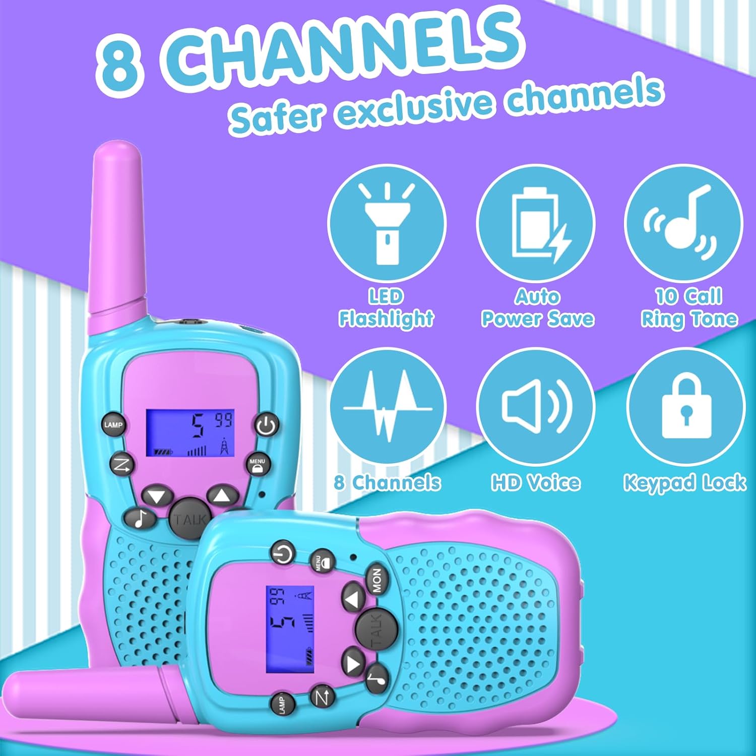 Kearui T-388 Walkie Talkies 3-12 Jahre 8 Kanal Funkgerät mit VOX Funktion LED-Taschenlampe (Blau-Violett)