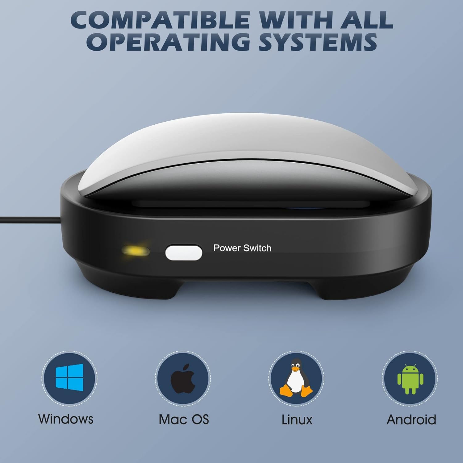 Stecken Sie es in ein 5-V-Wandladegerät oder einen USB-Anschluss, platzieren Sie Ihre Maus darauf. Fertig! Ein-/Aus-Schalter mit LED-Anzeigelampe zum einfachen Ausschalten bei Nichtgebrauch. Große Oberfläche für Mäuse.