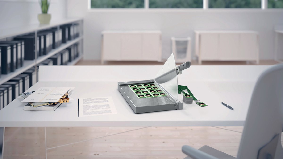 - schneidet außer Papier auch andere Materialien wie Etiketten, Folien, Fotos, Laminate und Karton