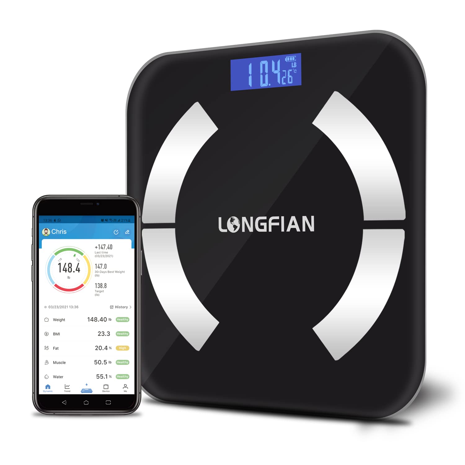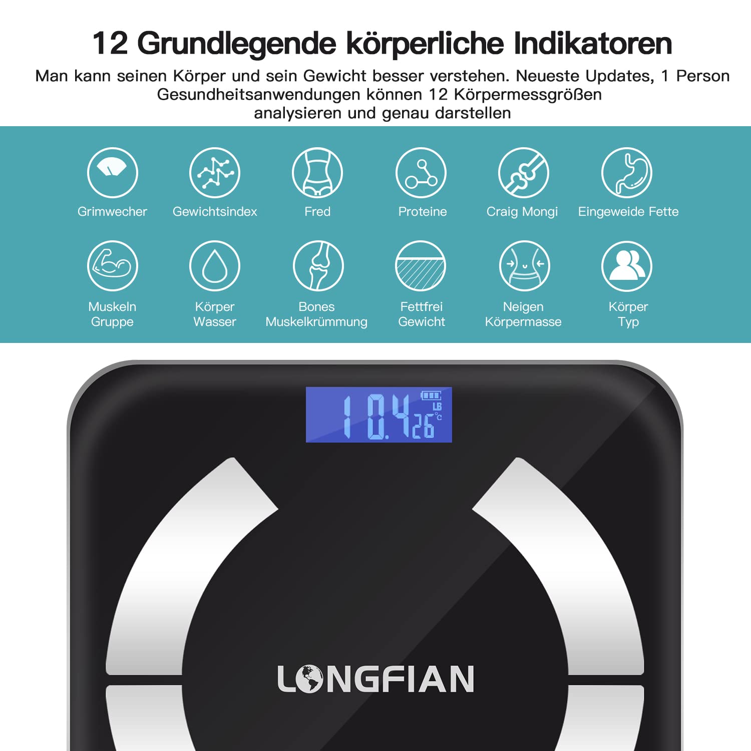 LONGFIAN Intelligente Waage für Körperfettwaage,Personenwaage mit APP
