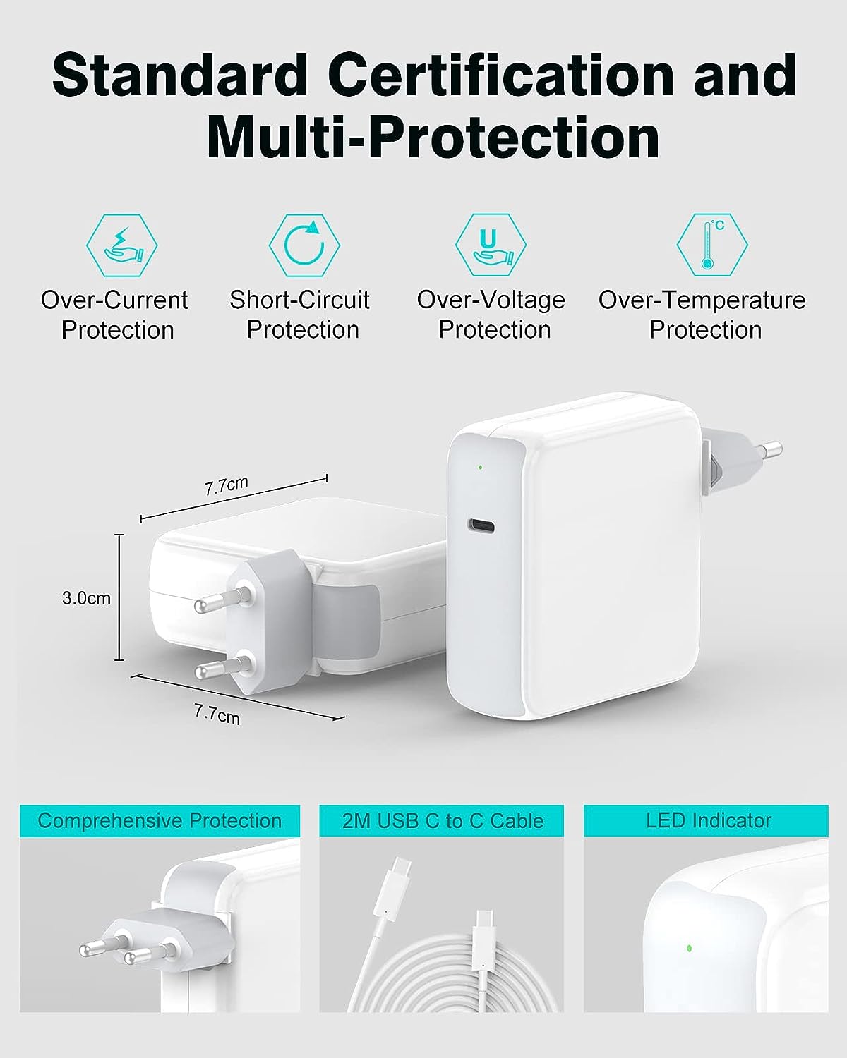 Viel schneller als 67 W: Laden Sie das MacBook Pro 14 Zoll in nur 30 Minuten schnell zu 50 % auf und verkürzen Sie die Ladezeit erheblich. Ausgestattet mit „Power Delivery Protocol (USB PD)“, entsprechend Ihrem MacBook, Lenovo, HP, Dell oder anderen USB-C-Port-Geräten, erzeugt es intelligent 96 W/90 W/87 W/67 W/65 W/61 W/45 W/30 W/29 W/ 25 W/20 W für schnelles Laden.