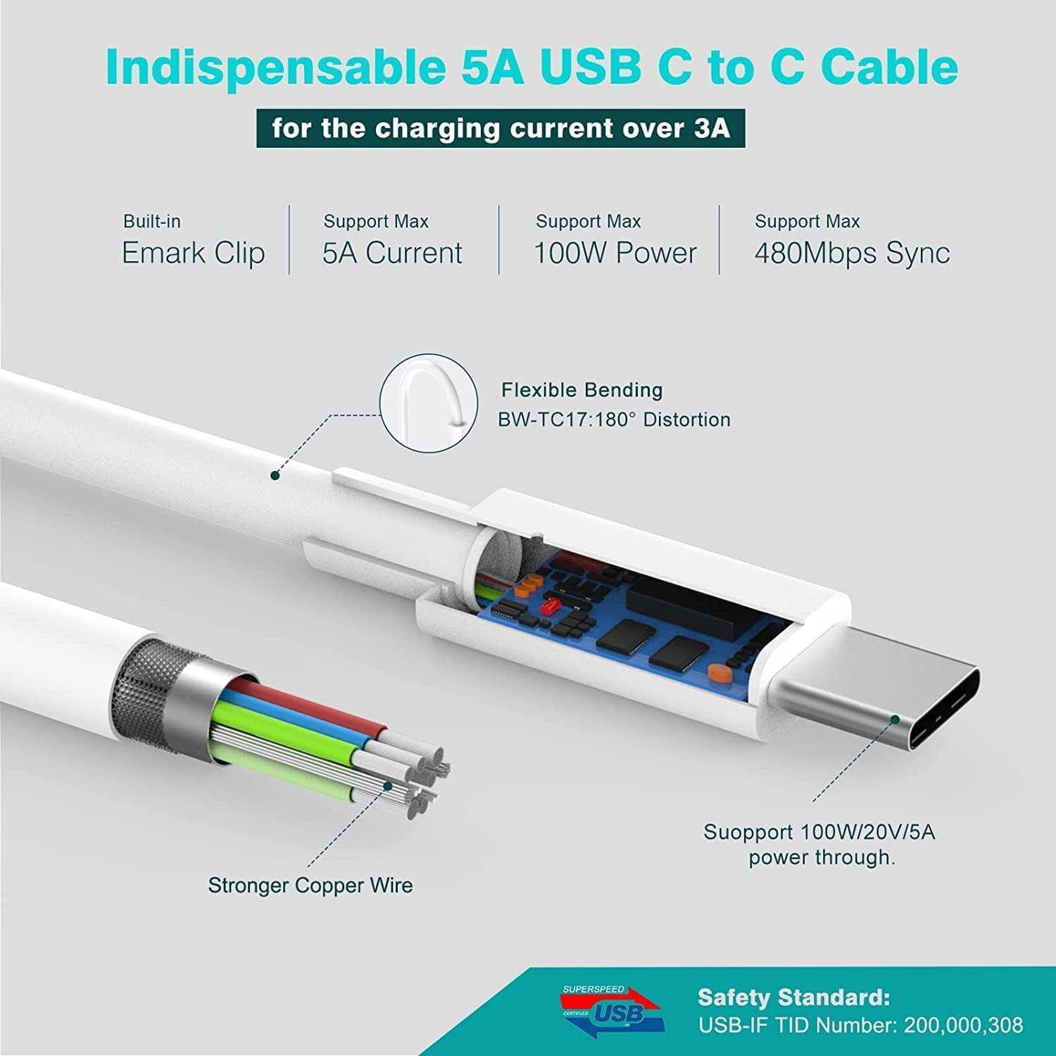 2 m langes 5-A-USB-C-auf-C-Kabel mit Emark-Chip: Specialized 5A ist ein integrierter Emark-Chip und besteht aus dickeren Kupferdrähten, um eine maximale Leistung von 5 A, 100 W und 480 Mbit/s Synchronisierungsdaten zu unterstützen. Das USB-IF-zertifizierte Kabel kann den Ladeanschluss Ihres teuren Geräts schützen Gerät vor Beschädigungen. Das USB-C-auf-C-Kabel ist doppelt so lang wie die anderen (andere: 1 m), sodass Sie überall arbeiten und Ihren Laptop aufladen können.