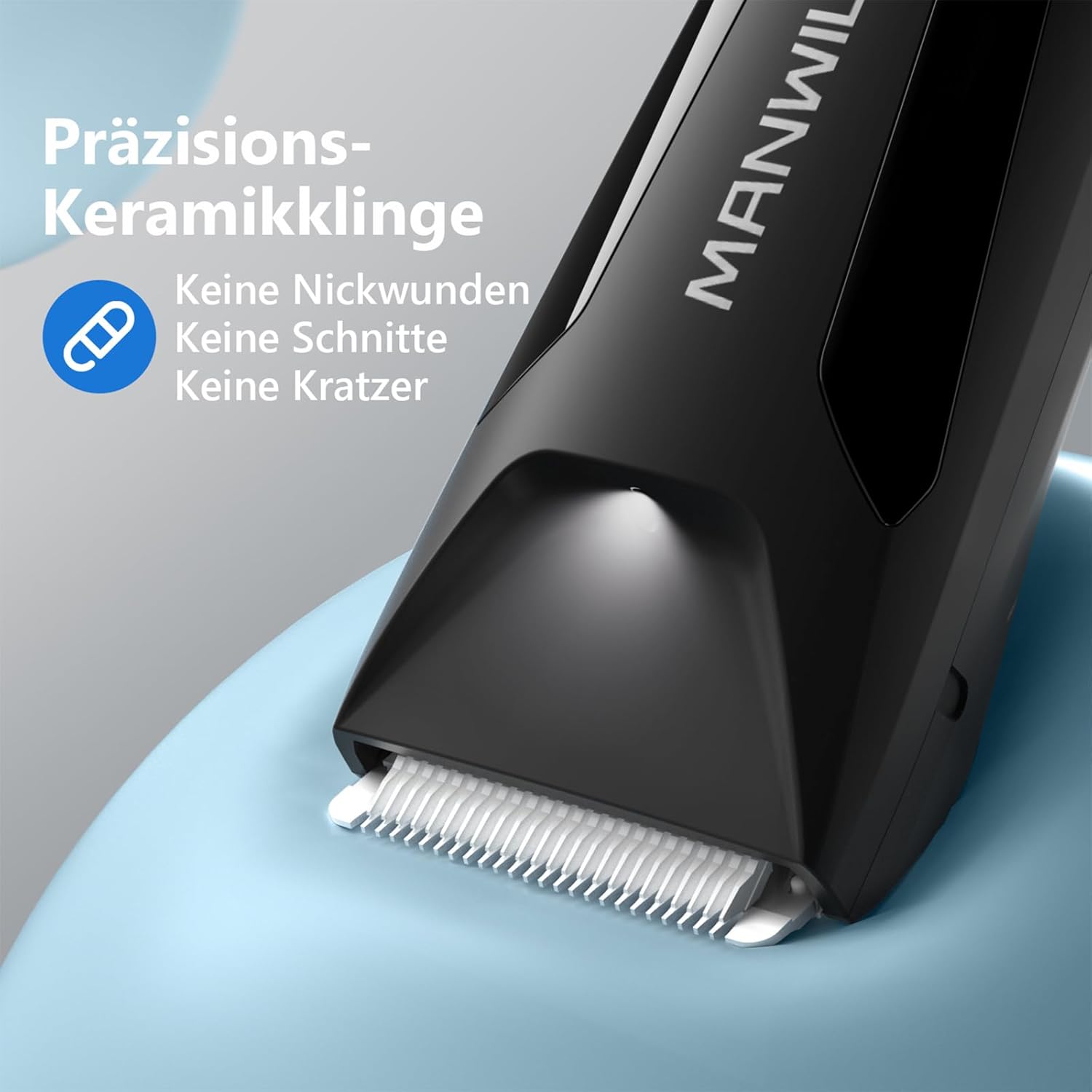 20% breitere Keramikklinge: Der MANWILLS Trimmer ist speziell für Körperhaare entworfen, einschließlich Brust, Rücken und Bereiche unterhalb der Taille. Mit einer um 20% verbreiterten Keramikklinge verbessert er die Effizienz, während er sicheres Trimmen ohne Schnitte, Kratzer oder Verletzungen gewährleistet.