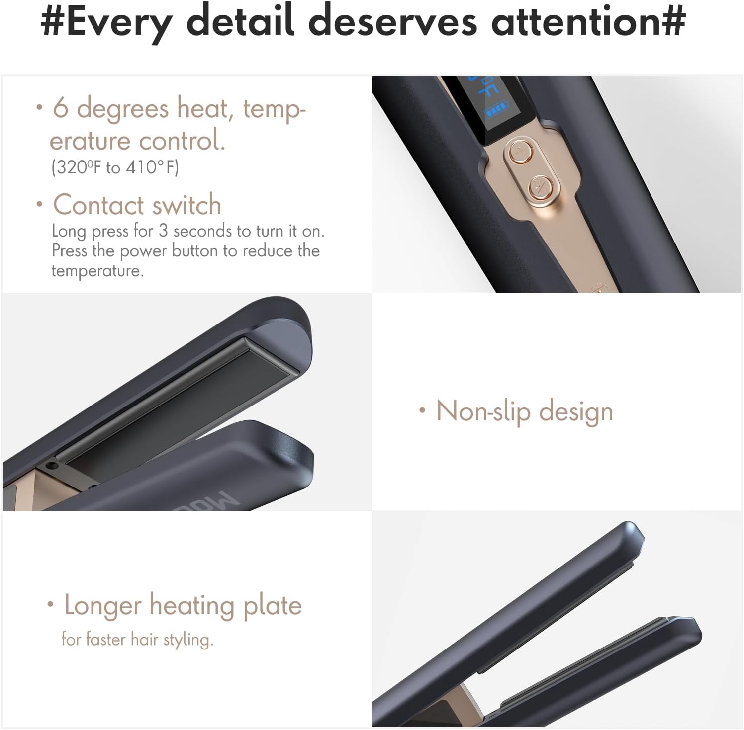 Unendliche Tragbarkeit, große Kapazität: Unser kabelloser Haarglätter verfügt über eine großzügige 9600 mAh Akkukapazität, die schnelles Aufheizen, hohe Temperaturen und über 55 Minuten Nutzungszeit gewährleistet. Es passt zu jeder Haarlänge und jedem Typ. Dieser kabellose Haarglätter ist ideal, wenn Sie reisen oder ausgehen. Sie müssen nicht an Drähte gebunden werden, keine Notwendigkeit, Steckdosen zu finden. Legen Sie es einfach in Ihren Koffer. Sehen Sie jederzeit und überall perfekt aus.