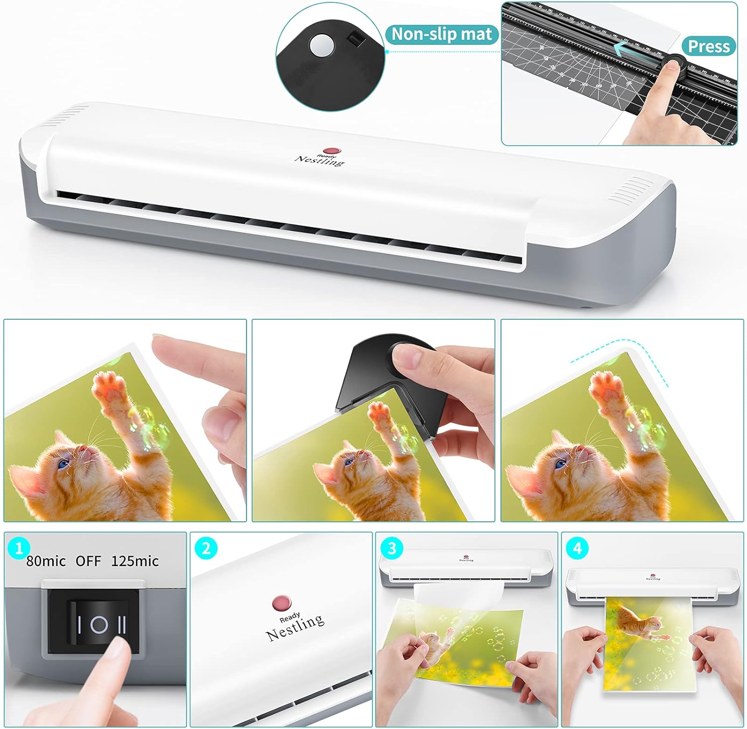Nestling Laminiergerät A3 A4, geräuschloses Laminieren 80-125mic, kompaktes Gehäuse, geschnittene Pappe und 10 Testhüllen OL341