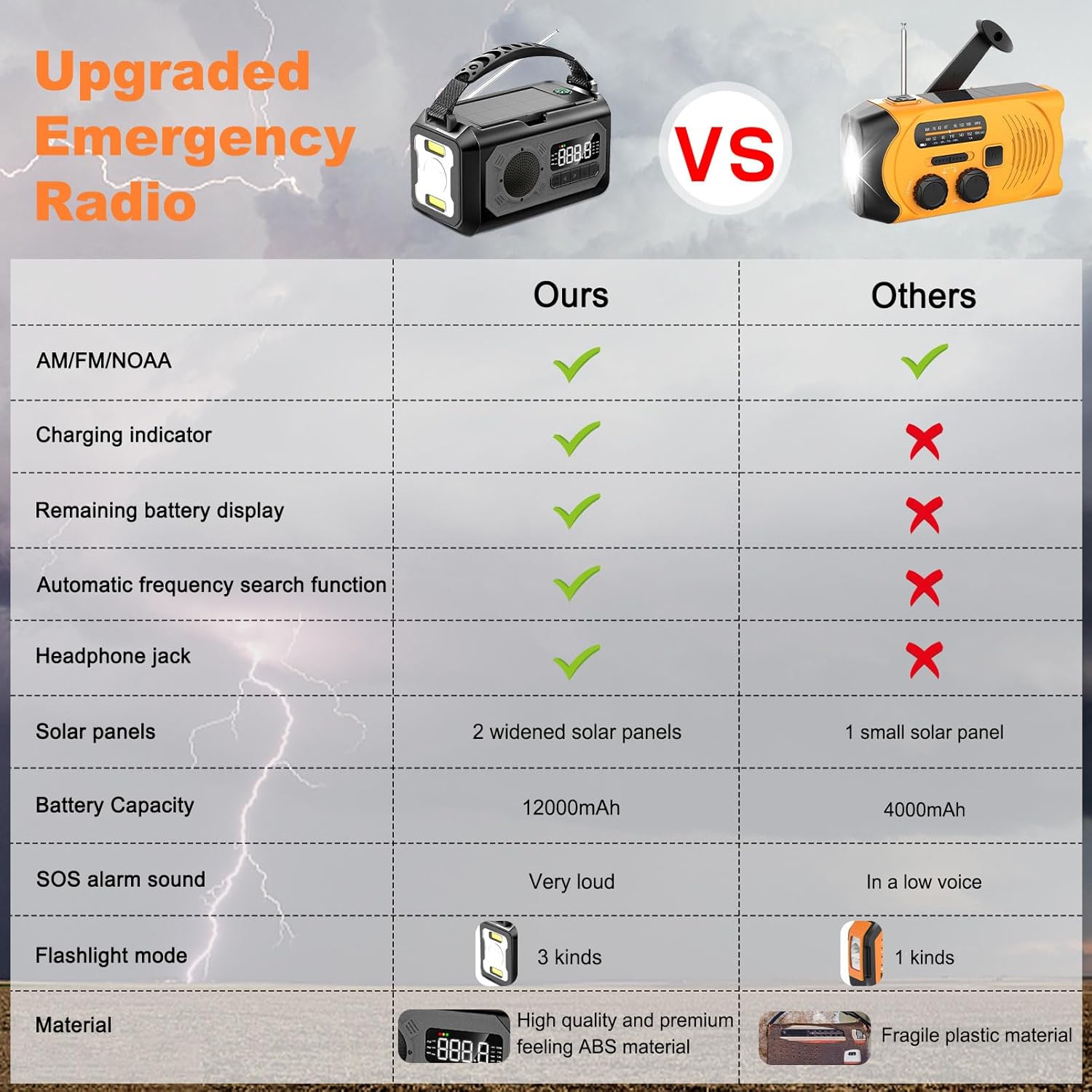 【Notfallvorsorge】 In der heutigen unvorhersehbaren Welt ist es wichtiger denn je, ein zuverlässiges Notfunkgerät zu haben. Mit seinem leistungsstarken Akku, den vielfältigen Lademöglichkeiten und den wesentlichen Notfallfunktionen ermöglicht es Ihnen, in Krisenzeiten in Verbindung zu bleiben und informiert zu bleiben, egal was passiert. Ideal für andere Notfälle wie Stromausfälle und Stürme, damit Sie sicherer und besser vorbereitet sind, ist das Radio eine großartige Ergänzung für jedes Notfall-Set oder Outdoor-Abenteuer.