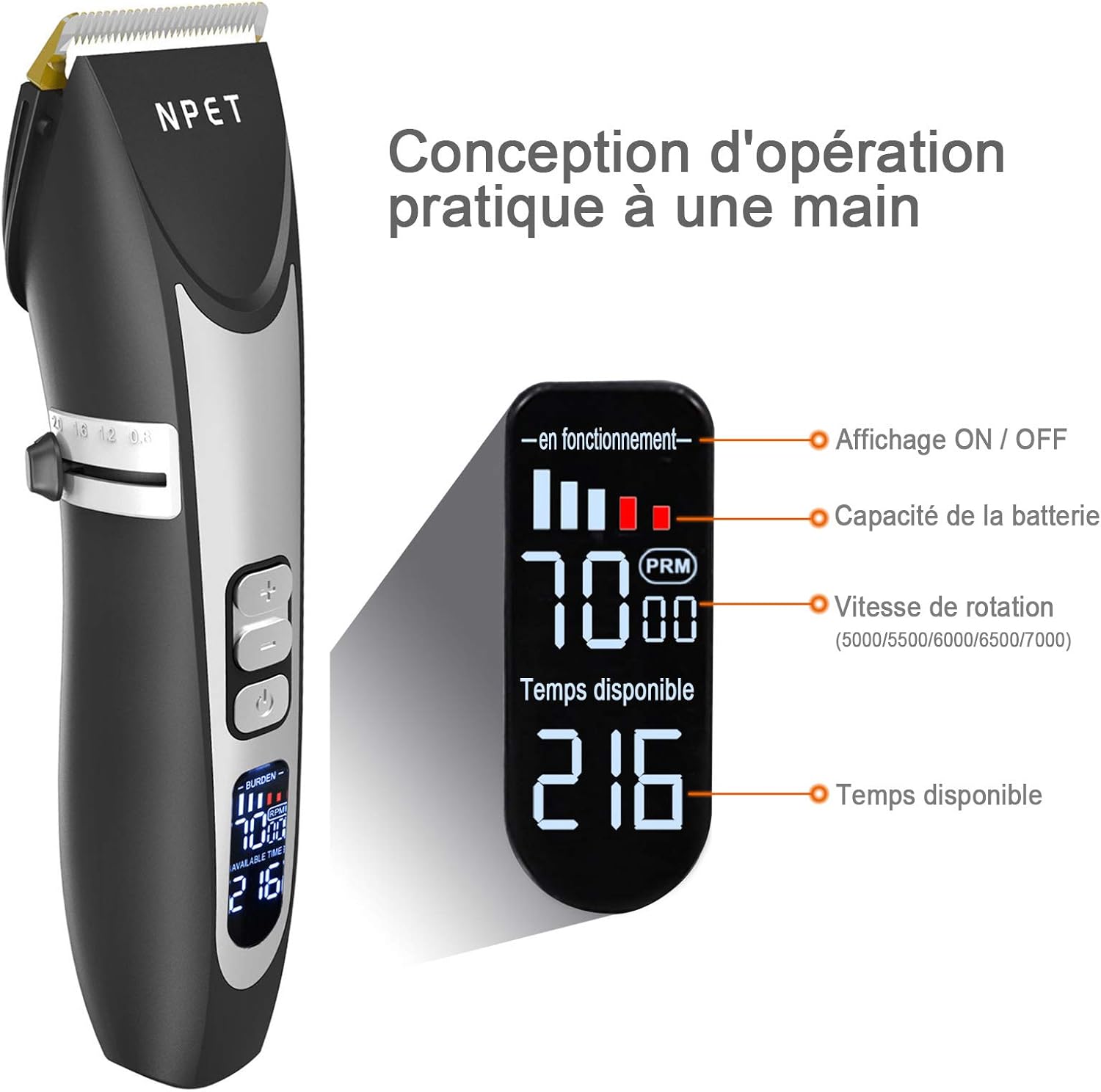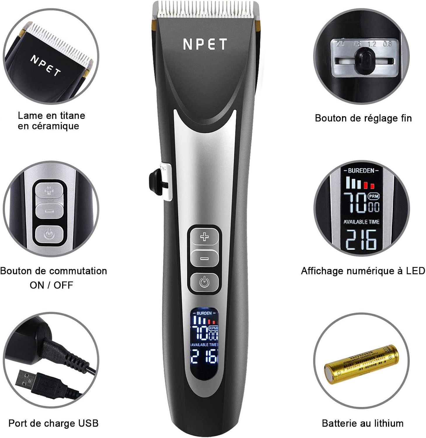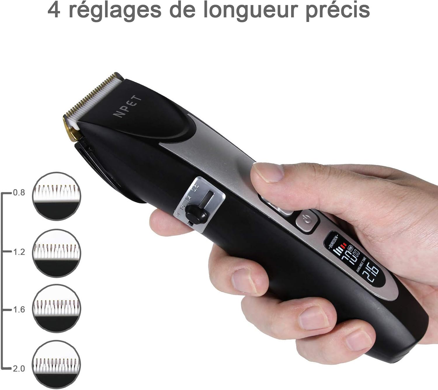 NPET Haarschneidemaschine für Herren, wiederaufladbar, mit Keramikklinge, verstellbar auf 5 Geschwindigkeitsstufen, verschiedene Längen 0,8 – 12 mm