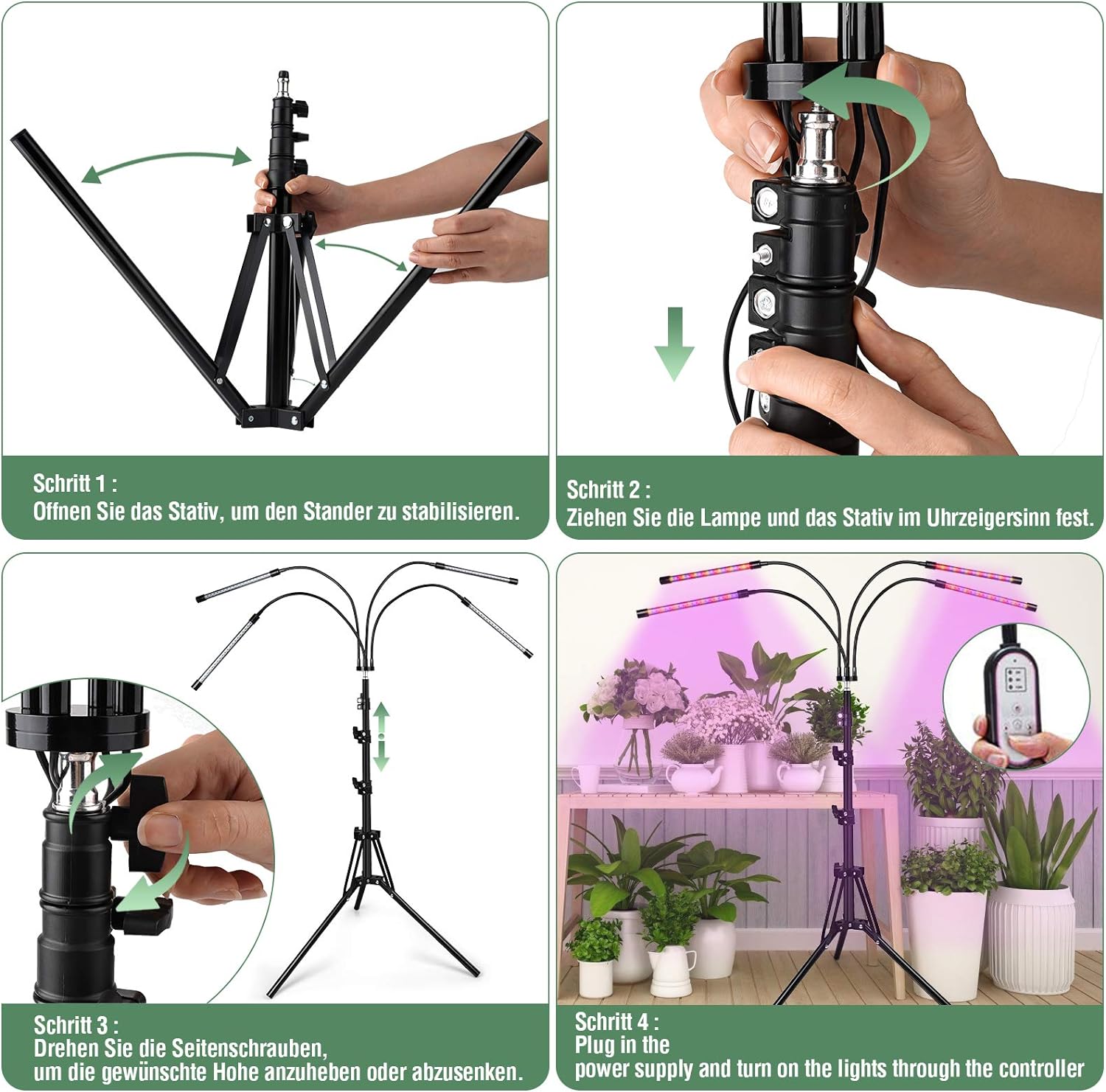 • ⏰【4/ 8/ 12H TIMER &EINSTELLBARE STÄNDER 】Die Beleuchtungsdauer der led pflanzenlicht kann je nach den täglichen Anforderungen Ihren Pflanzen auf 4/8/12 Stunden eingestellt werden. Darüber hinaus verfügt die pflanzenbeleuchtung über einen Ringspeicher. Wenn sie eingesteckt bleibt, merkt sich die uv lampe für pflanzen die aktuelle Einstellung und schaltet sich am nächsten Tag.Die Ständer der Led Pflanzenleuchten ist verstellbar (64 ~ 150cm) und eignet sich für Pflanzen unterschiedlicher Höhe.