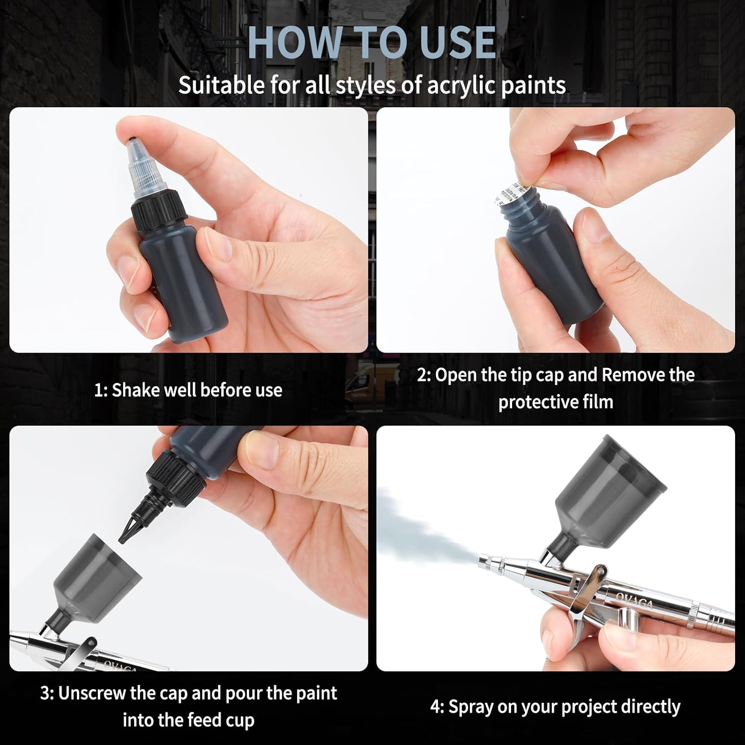 Verbessertes Multifunktions-Airbrush-Set: Im Vergleich zu anderen Airbrush-Sets auf dem Markt bringt Ihnen das verbesserte Airbrush-Set einen Luftdruck von 32 PSI und der höchste Luftstrom erreicht 8–10,5 l und erhöht 60 % der Leistung, es kann auch nach langem Gebrauch stabil sein. So können Sie es verwenden, um viele professionelle Bedürfnisse zu erfüllen.