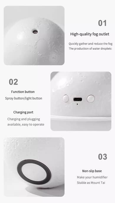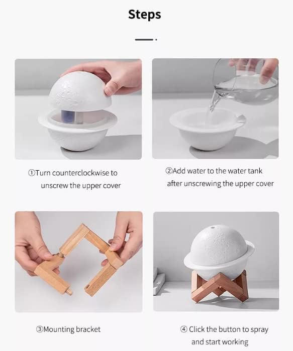 Sicherheit: Ultraschall-Technologie erzeugt einen sanft kühlen Nebel ohne Hitze und das Gerät verfügt über eine automatische Abschaltung, wenn der Wasserstand niedrig ist, um Schäden zu verhindern. Der Planetenbehälter besteht aus sicheren Polypropylen-Materialien und ist auslaufsicher, während er in Betrieb ist, perfekt für den Einsatz in der Nähe von Kindern und Babys.
