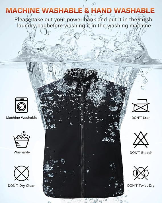 Maschinen-/Handwaschbar - Rrtizan beheizte Bekleidung ist maschinenwaschbar/handwaschbar. Entfernen Sie vor dem Waschen das Netzteil, stecken Sie das USB-Kabel in die Tasche und verschließen Sie es. Bei Maschinenwäsche legen Sie das Produkt in einen Wäschesack und beginnen Sie dann mit dem Waschen.