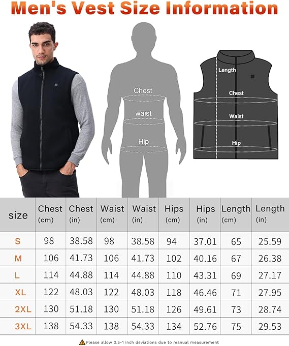 Leichte und umfangreiche Verwendung - Dieser beheizte Körperwärmer besteht aus Stoff, wodurch er perfekt für den Außenbereich wie Motorräder, Berg, Camping, Wandern, Skifahren, Angeln, Jagen und den täglichen Gebrauch ist. Die Heizkleidung kann im Mantel oder direkt draußen getragen werden, stilvoll und warm. Und diese beheizte Weste ist sehr leicht und zum Tragen beim Ausgehen geeignet. Es ist auch ein warmes Geschenk für Älteste, Verwandte und Freunde.